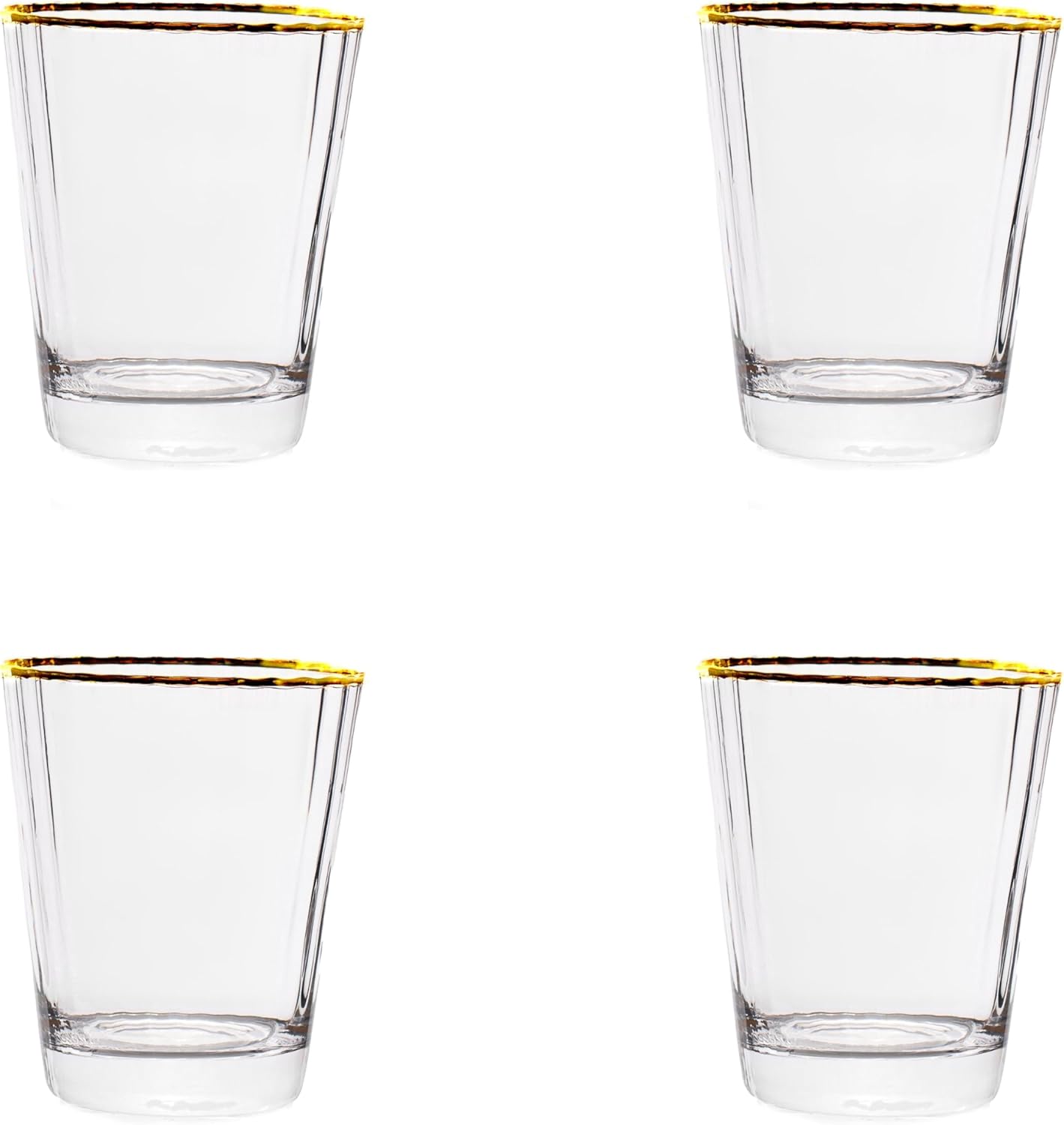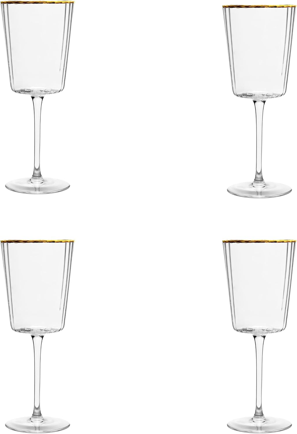 Elevate your table with Grace, a striking line of gold-rimmed glassware that combines timeless elegance with modern edge. Each piece features a refined silhouette with crisp, angular sides that bring a contemporary twist to classic glass design. The delicate gold trim adds a touch of sophistication, making these glasses ideal for both everyday luxury and special occasions. Crafted with care, they are recommended for hand wash only to preserve their radiant finish. Each set includes four glasses, perfect for hosting or gifting.