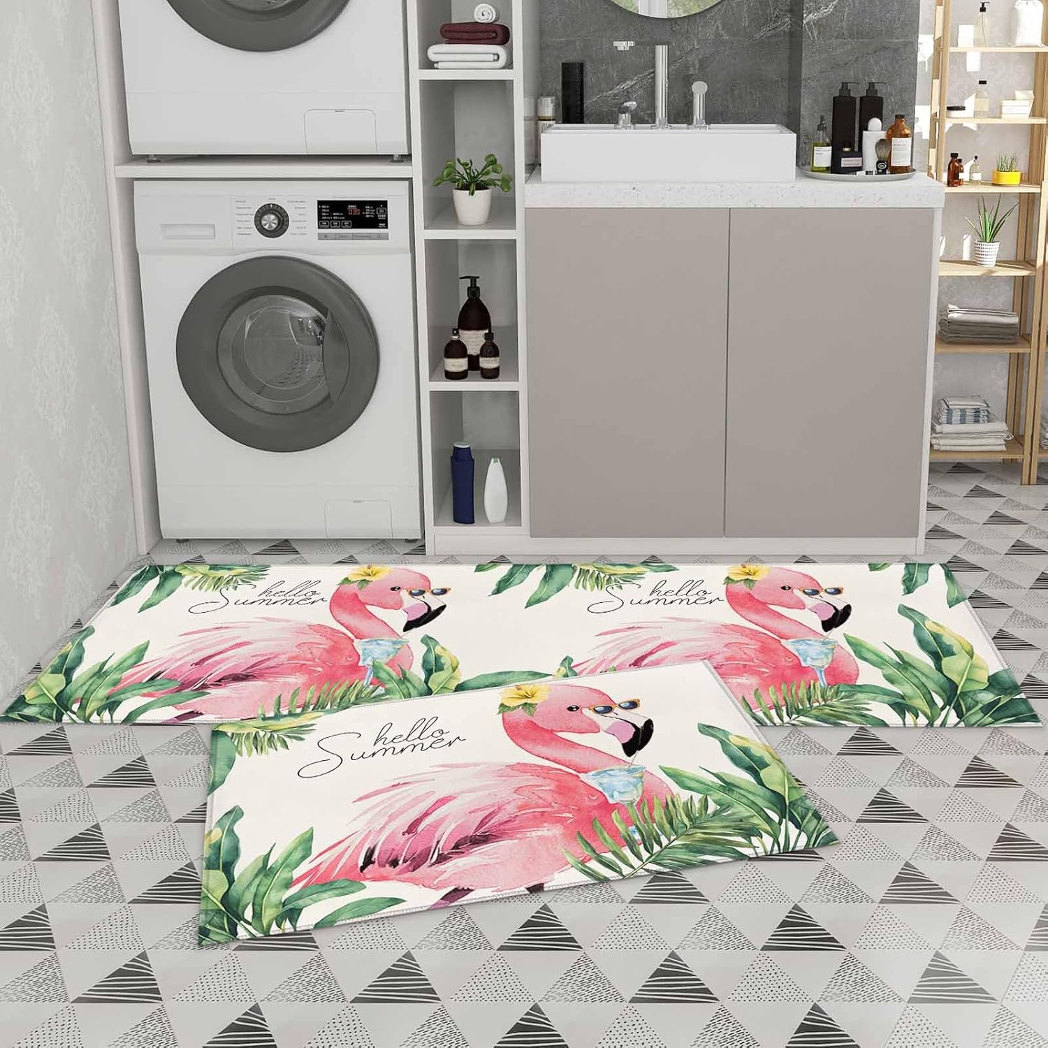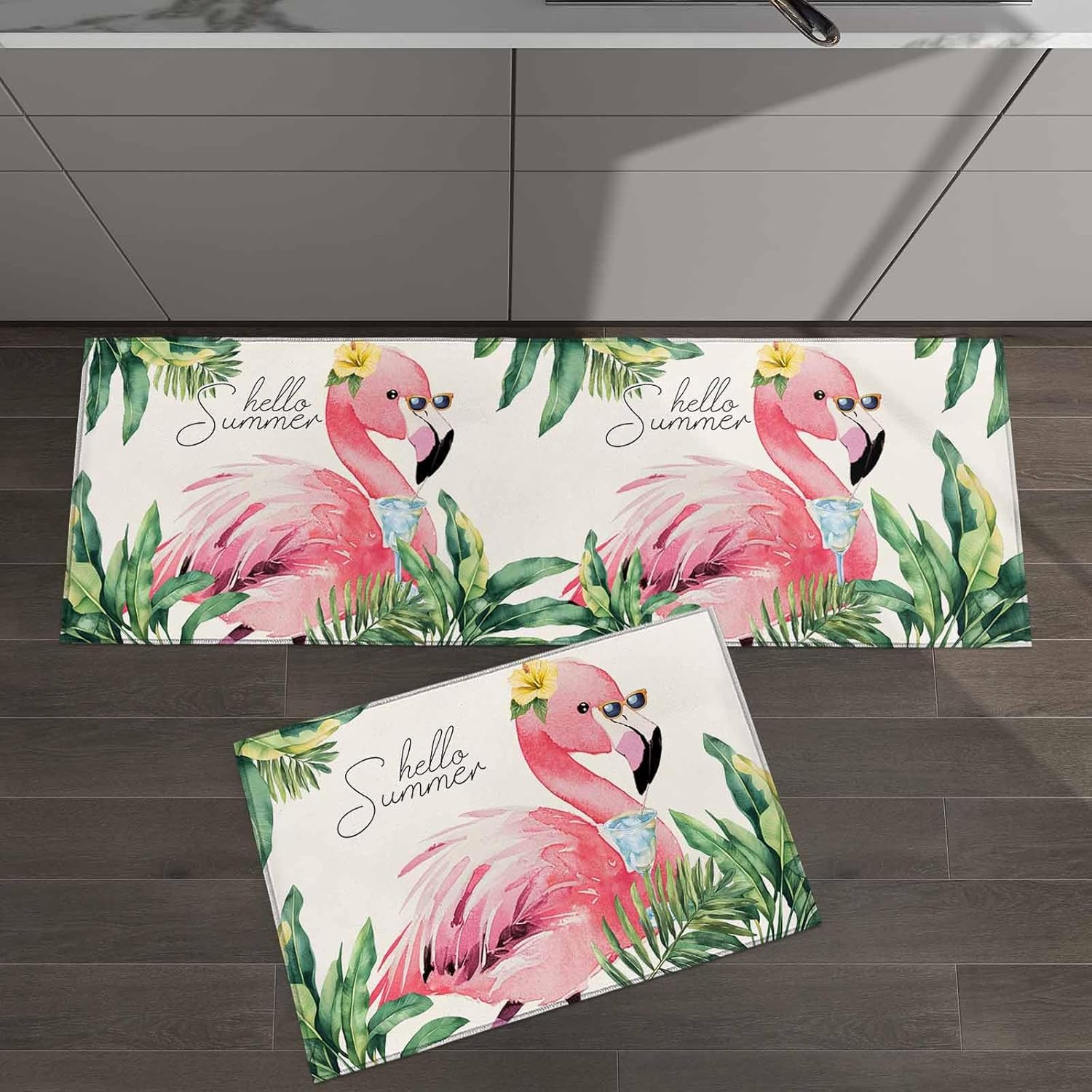 Specification 2 Pieces Kitchen Rugs and Mats Size 15.7x23.6in+15.7x47.2in (About 40x60cm+40x120cm) 18x30in+18x48in(About 45x75+45x120cm) 18x30in+18x60in(About 45x75+45x150cm) 19.7x31.5in+19.7x47.2in (About 50x80cm+50x120cm) 19.7x31.5in+19.7x63in (About 50x80cm+50x160cm) 23.6x35.4in+23.6x70.9in (About 60x90cm+60x180cm) 20x24in+20x48in (About 51x61cm+51x122cm) 1 PC Indoor Doormat Size 15.7x47.2in (About 40x120cm) 19.7x47.2in (About 50x120cm) 18x47.2in (About 45x120cm) 18x59in (About 45x150cm) 19.7x63in (About 50x160cm) 23.6x70.9in (About 60x180cm) We provide 1 and 2-piece runner rugs set to meet diversified needs. Please allow a measurement error of 1-3cm. Area Carpet Advanced Feature Absorbent non-woven fabic surface; Non-slip rubber backing; Thin and low profile design; Does not easy to fade and not shrink, bringing long-lasting durability. Ideal Present Perfect present for lovers, friends, family and neighbors during the Father's Day, Mother's Day, Easter, Independence Day, Birthday, and housewarming. 100% Service This kitchen rugs may have creases during transportation, you can use an iron to iron the doormat. Kindly please note that - there may be slight deviations because of the different monitor and lights. Any questions about the mats, please do not hesitate to let us know.