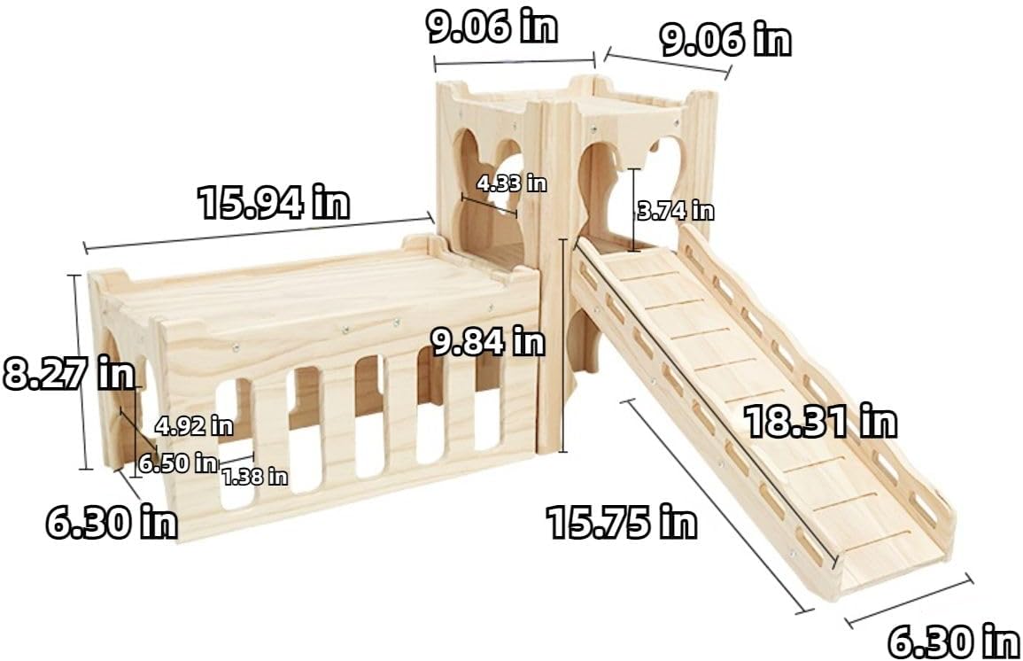 Product name:Hamster Hideout Color:Khaki Size Chart: Size Chart: A:9.06*9.06*15.16 in E:15.94*8.86*8.27 in G:17.31*6.30*2.36 in Pls check the size before you buy it. Packing:Hamster Hideout Set