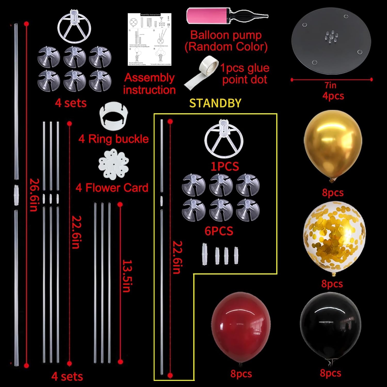 Celebrate the new year or a 2026 graduation with this 4 set black-red-gold balloon stand kit and a 4-inch wooden glitter “2026” sign. Perfect as New Year party supplies 2026 or 2026 graduation decorations, Easy to assemble and full of charm, it’s a simple way to bring cheer to your Happy New Year celebration or milestone moment!