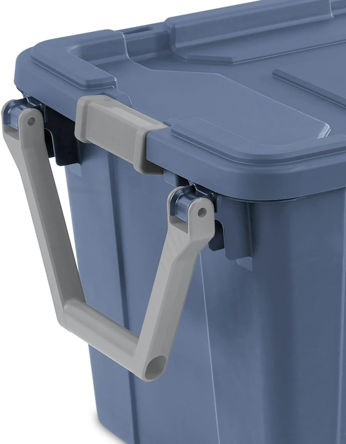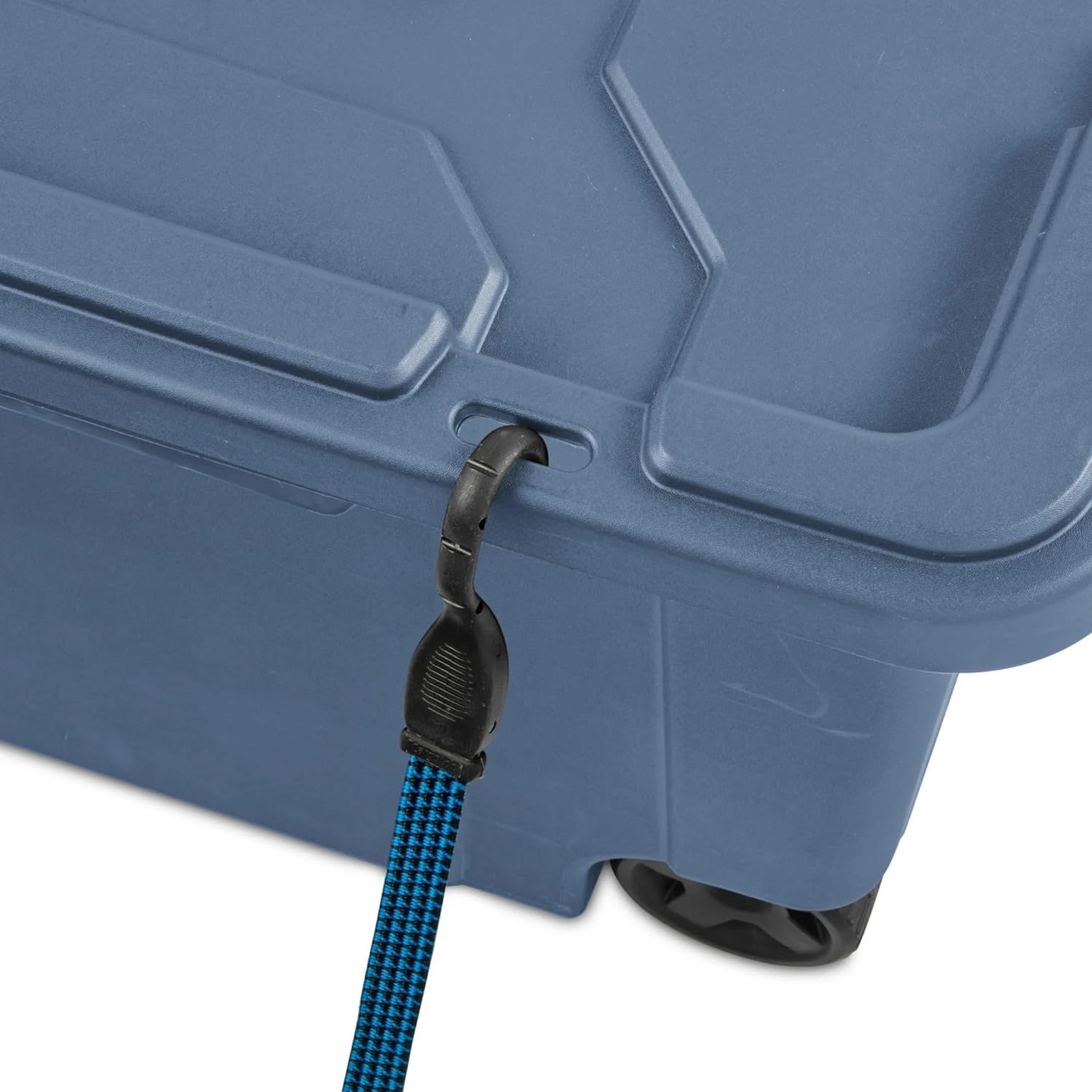 "Outside Dimensions: 36 3/4"" x 21 3/8"" x 18"",Interior Dimensions at bottom: 30 1/2"" x 16"" x 17 1/8"" Heavy-duty construction with robust non-slip grip latches Ergonomic handle rotates up for easy pulling and large wheels with metal axle allow for rolling over rough surfaces Deep recessed lids offer secure stacking capabilities helping to maximize available storage space Tight fit drip-resistant lid provides maximum protection against items getting wet.BPA-free and phthalate-free"