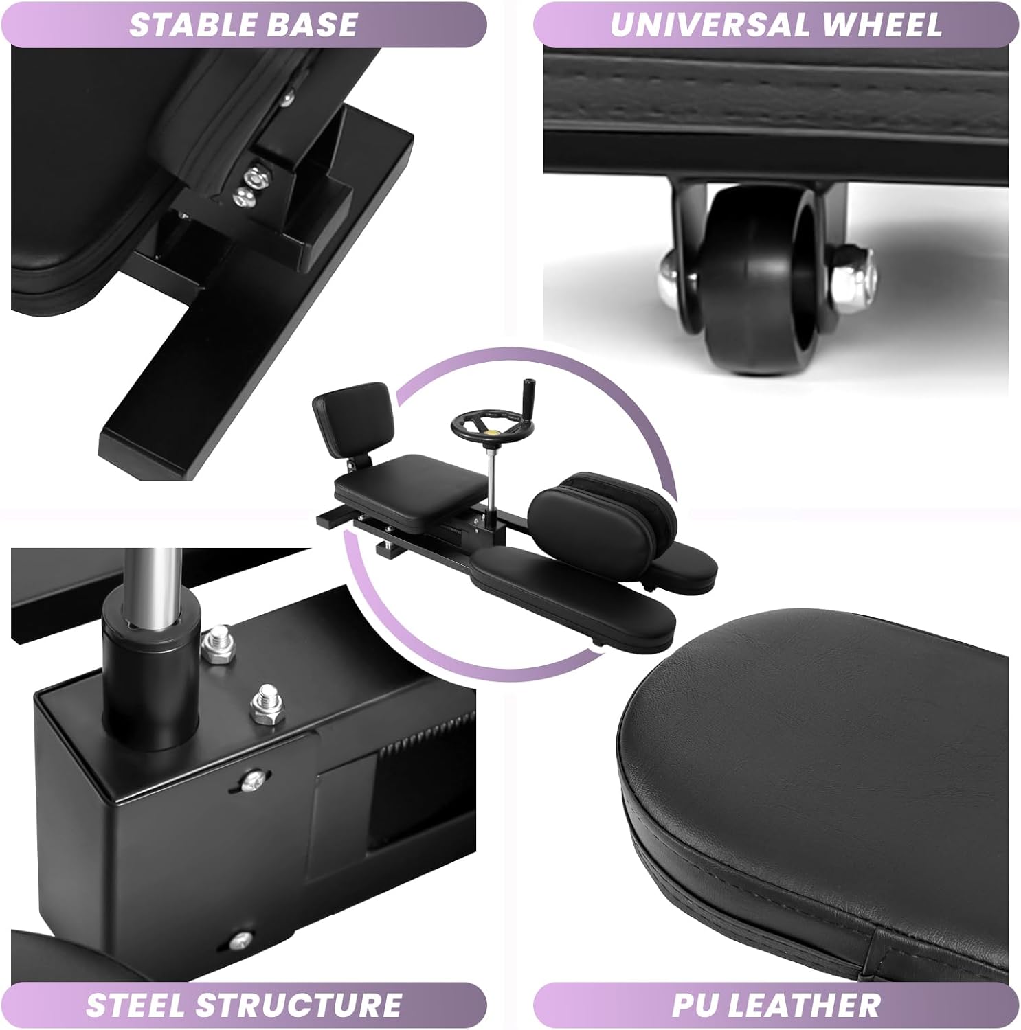 Unlock new levels of flexibility with our Split Machine. This innovative equipment allows you to effortlessly stretch and strengthen your muscles, improving your overall range of motion. Whether you're an athlete, dancer, or simply seeking a more limber lifestyle, the leg stretcher is designed to help you achieve your goals. With its user-friendly design and adjustable settings, you can customize your stretching routine to target specific areas and gradually increase your flexibility over time. Invest in your physical well-being and experience the freedom of movement with our Split Machine.Product Include of the stretching equipment:Main support X1Soft backrest X1Stretch leg pad X2Rotate the adjusting handwheel x1Silent universal wheel x4 (with locking function)Specifications of the split machine for flexibility:Adjustment range: 0-240° no pole adjustmentNoise level: <40 dBMaterial of the leg stretcher machine:Main frame: stainless steelPulley system: 360 degree silent pulleyContact surface: thickened PU leatherAdjusting mechanism: rotating hand wheelColor of the hip stretcher: BlackSize of the hip stretcher:Expansion size: 158" × 38.6" × 62"Storage size: 158" × 38.6" × 15"Leg pad length: 62.2"Features of the leg machine:1. One-click storage systemThe stretch machine adopts folding design, which can be quickly closed to 38.6×15cm ultra-thin size and easily stored against the wall.The universal wheel of the stretching machine is scratch-resistant rubber wheel surface, which protects the wood floor/tile from scratches, suitable for home and gym use.2. Adjust the systemThe split stretcher machine can be accurately adjusted from 0 to 240° to meet the refined needs of beginners to professional athletes.The leg split stretcher machine can operate the rotating handwheel with one hand, adjust smoothly without stalling, and has a service life of more than 100,000 times.3. Medically oriented design of the leg stretcher for flexibilityThe stretch machine for splits optimizes the stretching trajectory and improves the stretching effect for semitendinosus muscle, adductor magnus muscle, pectineus muscle, semimembranus muscle, adductor longus muscle and gracilis muscle.Application requirements of the split stretcher: flexibility improvement, exercise rehabilitation, muscle relaxation.4. Multi-scenario adaptation of the splits machine leg stretcher0-120° flexibility mode (Yoga/Ballet) : split trainer is suitable for open hip, splits, forward bending and other basic stretching, to help improve body flexibility.120-180° deep stretching mode (Fitness/Rehab) : deep relaxation of hamstring muscle and adductor muscle group to relieve muscle stiffness after exercise.5.Applicable sports of the split machine for kids: Yoga, Pilates, ballet, fitness, physical therapyWhether you are a fitness enthusiast looking to enhance flexibility, a dancer pursuing a split, or a parent hoping their child can stretch scientifically, there is a dedicated choice here. The leg stretching machine acts precisely on the legs to help relax the muscles. stretching machine for flexibility: To comprehensively enhance the flexibility of the body through scientific design; The split machine leg stretcher helps dancers easily complete the highly difficult split movements. The split machine for flexibility kids, specially designed for children, ensures their safe stretching. The hip stretching machine focuses on the hip to relieve stiffness.