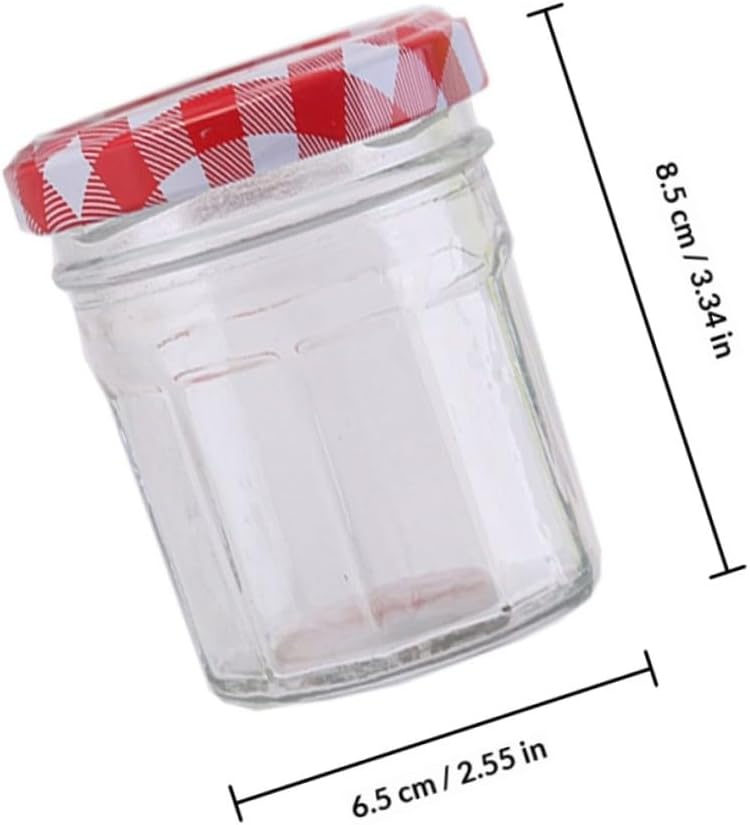 Package List 6 x jam bottle Features -Material: Glass. -Product Info:Glass honey bottle -Color: Red. -Size: About 8.5x6.5x6.5cm/3.34x2.55x2.55 inch. - Safe and convenient packaging kitchen storage jar. - The food storage jar is good for storing dry food, can be used as a glass coffee jar, tea storage canister, sugar jar, salt and pepper container, candy jar and more sealed jar. - Absolutely a good storage accessory for households. - Allows food to stay fresh longer glass storage bottle. - Proper size for easy to hold.Goods Descriptionhoney glass jar This is a storage jar made of glass.glass sealed can Create a dry and sealed environment, which is to maintain the freshness of food.glass storage jar The transparent container is strong and enough for everyday use which can be used to organize and store food such as whole grains, honey, snack, sauce, etc