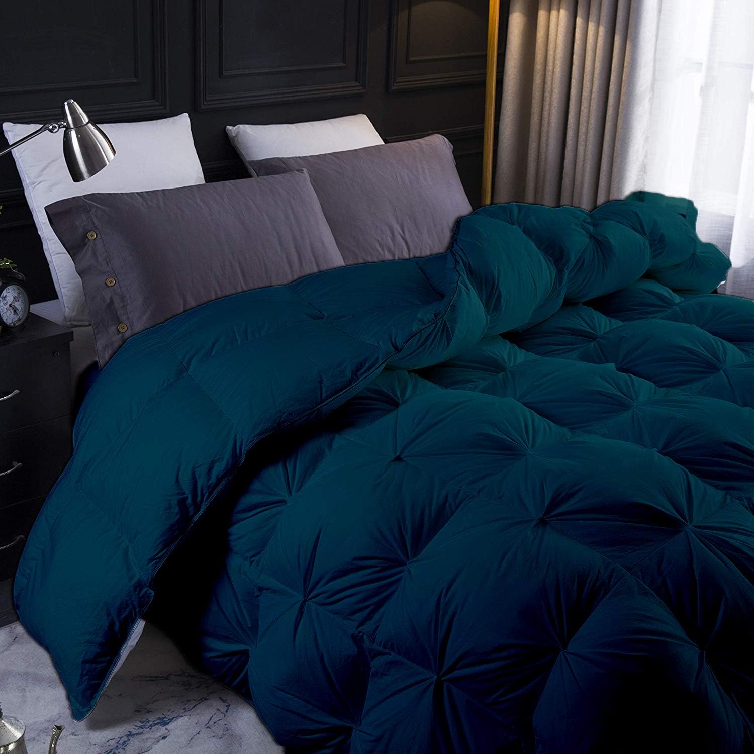 All-Season Down Pinch Pleated Comforter 100% Egyptian Cotton 1000-TC Corner Tebs Wrinkle & Fade Resistant Box Pintuck Comforter Set 90"X90" Queen Size Teal Solid