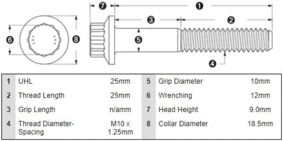 | Included Components | M10 x 1.25 x 25 12pt SS bolts |