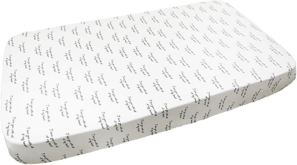 At Baby & Brooke, we believe that comfort and care go hand in hand. Our premium crib sheets are made with viscose derived from bamboo, offering a luxuriously soft, breathable, and eco-friendly fabric option for your baby’s nursery. "I Love You With All Of My Heart" Incredibly soft crib sheets are designed to echo the love and bond between a child and parent. Oeko tex, 95% Viscose made from Bamboo, and 5% Spandex. (52" x 28"). The gender-neutral design features uplifting words of affirmation to create a nurturing environment, perfect for welcoming your little one. Designed with a fitted style for a secure, wrinkle-free fit on standard crib mattresses, these sheets are easy to care for and built to last.