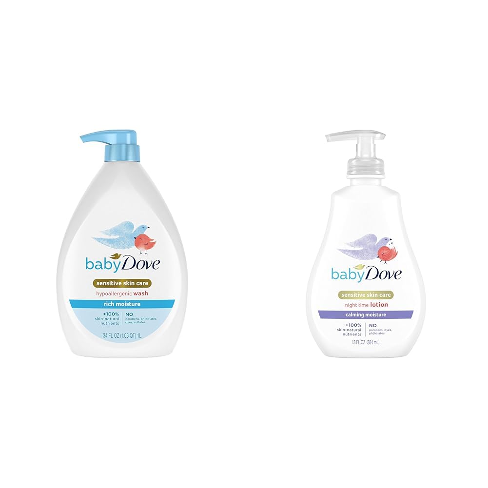 Baby Dove Sensitive Skin Care Baby Wash Rich Moisture For Baby Bath Time Tear-Free and Hypoallergenic 34 ozBaby bath time is special. And with baby skin being 30% thinner than ours, the best care is the gentlest. To help protect your little one's delicate skin, we created Baby Dove Rich Moisture Hypoallergenic Baby Wash to help nourish and replenish your little one's delicate skin during bath time. This tear-free and hypoallergenic baby wash for skin and hair ensures bath time is all about smiles, not tears. Made with 100% skin-natural nutrients, which are identical to those naturally found in skin, and prebiotic moisture to help replenish the essential moisture and nutrients that baby's skin can lose during bath time. To use this baby wash, gently wet baby's hair and skin with warm water, work into a lather, and rinse for touchably soft skin. This gentle wash is pediatrician recommended and dermatologist tested, and our caring formulas are created without dyes, parabens, phthalates or sulfates, so you can feel assured that this baby wash gives baby's skin the complete care it needs. We know there's no right or wrong way to be a parent – only your way. That's why Baby Dove is here to help give you confidence that you're providing the best skin care for your baby's skin. Our Tip to Toe Wash is sold in 6.5 oz., 13 oz., and 20 oz. bottles. Looking for something for your baby's extra sensitive skin? Look for Baby Dove Fragrance Free Moisture Hypoallergenic Wash.Baby Dove Sensitive Baby Wash Melanin-rich Skin Nourishment For Baby Bath Time Tear-Free and Hypoallergenic 34 ozUniquely for your baby, our Melanin-rich Skin Nourishment baby care range is ultra-gentle and ultra-nourishing. Baby Dove Melanin-rich Skin Nourishment Baby Body wash, gently cleanses and replenishes skin's essential nutrients to help prevent dryness. Ultra-gentle and tear free: Our hypoallergenic body wash, is safe for newborn's first bath and made for baby's delicate skin. Created with care and without parabens, dyes, sulfates or phthalates, our baby wash has been tested by pediatricians and dermatologists for baby care that is suitable for everyday use. Ultra-nourishing and non-drying: Our baby bath time wash, made with a nourishing moisture blend, helps to build a foundation for healthy, resilient skin. Baby Dove Melanin-Rich Skin Nourishment Baby Body Wash is non-stripping and helps prevent baby's skin from drying out and flaking. 95% naturally derived baby care formula: Our wash is delicately scented and infused with naturally derived coconut oil, almond oil, calendula, chamomile and oatmeal. Our baby wash and shampoo, is made with 100% skin-natural nutrients, which are nutrients identical to those naturally found in skin, and prebiotic moisture to support baby's natural skin health. To use: Wet baby's hair and skin with warm water during bath time. Gently wash working into a rich creamy lather. Our tip to toe wash can be used as a baby shampoo and body wash. After bathing, finish with Baby Dove Melanin-rich Skin Nourishment Hypoallergenic Cream for all-day moisture. We're here with you. Baby Dove and our baby toiletries support maternal mental health by partnering with Postpartum Support International. We know there's no right or wrong way to be a parent – only your way. That's why Baby Dove is here to help give you confidence that you're providing the best baby care for your baby's skin and hair. Explore our range of baby bath products for baby's melanin-rich skin and textured hair at babydove.com. *We consider an ingredient naturally derived if it's unchanged from nature or has a natural source and undergone some processing but keeps more than 50% of its original structure. 95% naturally derived means 95% of our formula, including water, is made up of naturally derived content.