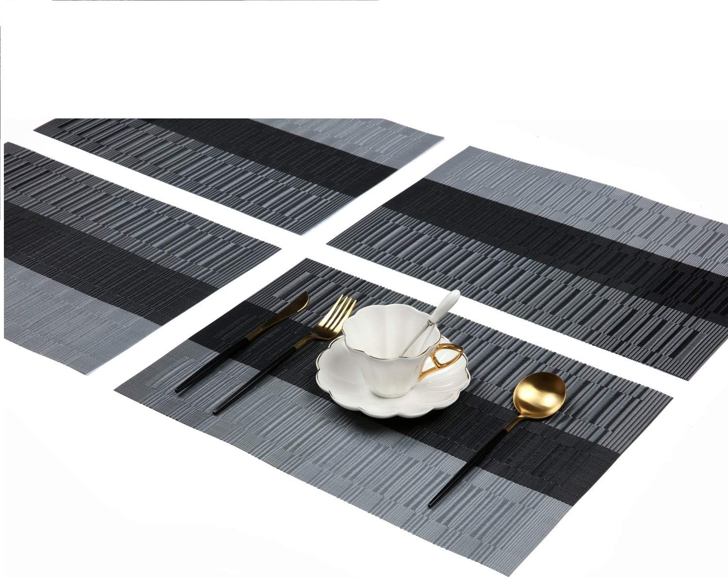 Placemats for Dining Table, Washable Heat-Resistant Table Mats, Stain Resistant Anti-Skid Woven Vinyl Place Mats Placemats Set of 4