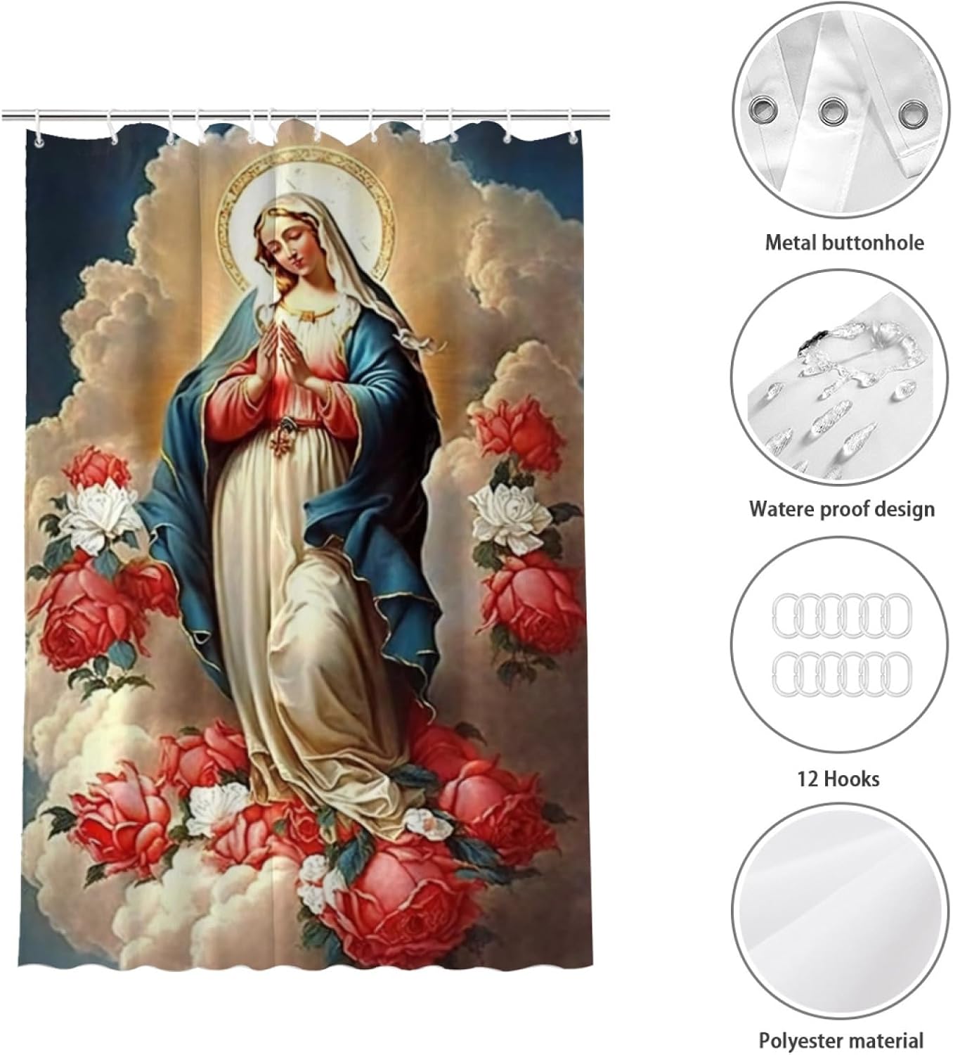 RMSGOZO Bathroom Virgin Mary In The Clouds Patterned Shower Curtain Set About RMSGOZO Brand Has a professional pattern design department. Dedicated to producing high quality, fashionable, attractive and unique designs. Focus on the comfort and decoration of the products, so that you can enjoy the freedom of your own life while bathing. Standard Size Shower curtain: 72 X 72 Inches / 180 X 180 CM High quality materials and exquisite craftsmanship Made of high quality 100% polyester fabric. Durable, waterproof, colorfast and wrinkle-resistant. High definition printing with vibrant colors RMSGOZO Virgin Mary In The Clouds Shower Curtain adopts HD thermal transfer printing technology to ensure vivid patterns, vibrant colors, no odor and no fading. Give you visual enjoyment while bathing. Raincoat waterproof technology Adopts raincoat waterproof technology. Let the water droplets fall off quickly. Keep your bathroom neat and clean. Durable shower curtain hooks and rust-resistant metal grommets Includes 12 C-shaped ring for easy installation on shower curtain rod Easy to clean RMSGOZO shower curtains are durable, easy to care for and dry quickly after washing, machine washable in cold water, gentle cycle, no bleach, tumble dry low or hang to dry. Professional Services RMSGOZO is a team focusing on original design, we have fashionable and creative designers and excellent service team, dedicated to providing customers with beautiful and practical products. If you have any questions, please contact us directly and we will provide you with service within 24 hours. If you are not satisfied with your purchase, we are happy to offer you an exchange or refund. NOTE Wrinkles from packing will lessen after hanging or ironing. Due to manual measurement, the existence of 2-3cm error is normal.