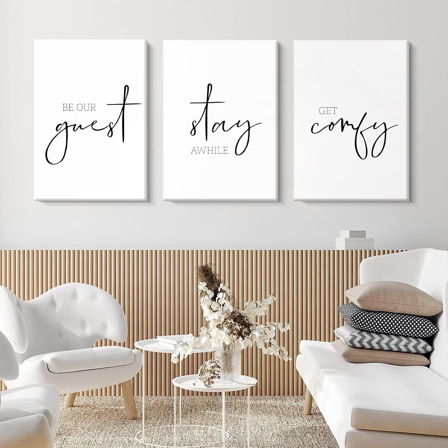โ Guest Room Canvas Wall Art Wrapped Canvas โ Material: Thick Cotton Canvas Ink: Natural Eco-Pigment Ink Color: Vivid Color Package: Beautiful Package Package Included Only 3 set art prints We Sincerely Hope You Are Satisfied With Your Shopping If you aren't satisfied with your canvas arts, please contact us at any time, we are here to help you. Note: Due to manual measurement, please kindly allow 1-2 mm size error. Brightens up your everyday๐