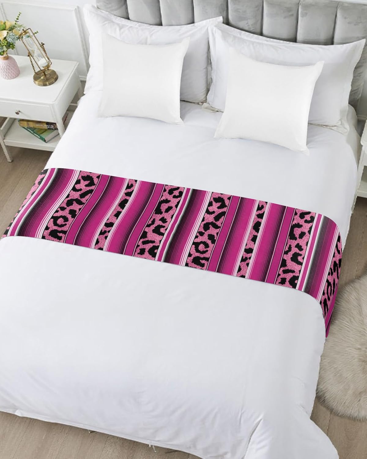 Bed Runners & Scarves Material Satin Material Bed runner is non-slip, dust-proof and has a great decorative effect on your bed. With bed scarf, the overall atmosphere of your room will also have a great improvement. The bed runner is solidly made and can be used all year round. Bed Scarf Sizes Bed runners for single size bed: 71 x 20 inches. Bed runners for queen size bed: 83 x 20 inches. Bed runners for full size bed: 94 x 20 inches. Bed runners for king size bed: 102 x 20 inches. Bed Scarf Package 1 x bed runner(without throw pillow cover) Bed Runner Washing Instructions The color will not fade. Hand or machine wash gently, iron at medium temperature, not more than 150°C (150°F). Try to machine wash separately, not with sharp objects. Do not use chlorine bleach. Great Gift This are fantastic bed runners & scarves that suitable for all seasons use. A ideal gift for your family, friend, lover Christmas Day and Thanksgiving Day gift. Easily coordinated and changed to match all holidays and seasons provides you and gift recipient with a pleasant atmosphere. Warranty We guarantee the quality of our products. If you have any problem or dissatisfaction with the product, please contact us (via email) and we will do our best to get back to you with a satisfactory reply. Please Note Due to the product is measured manually, there may be a slight size error, we hope you could allow. Please understand that there may be a difference in color between the image and the actual item due to the nature of the camera or monitor.