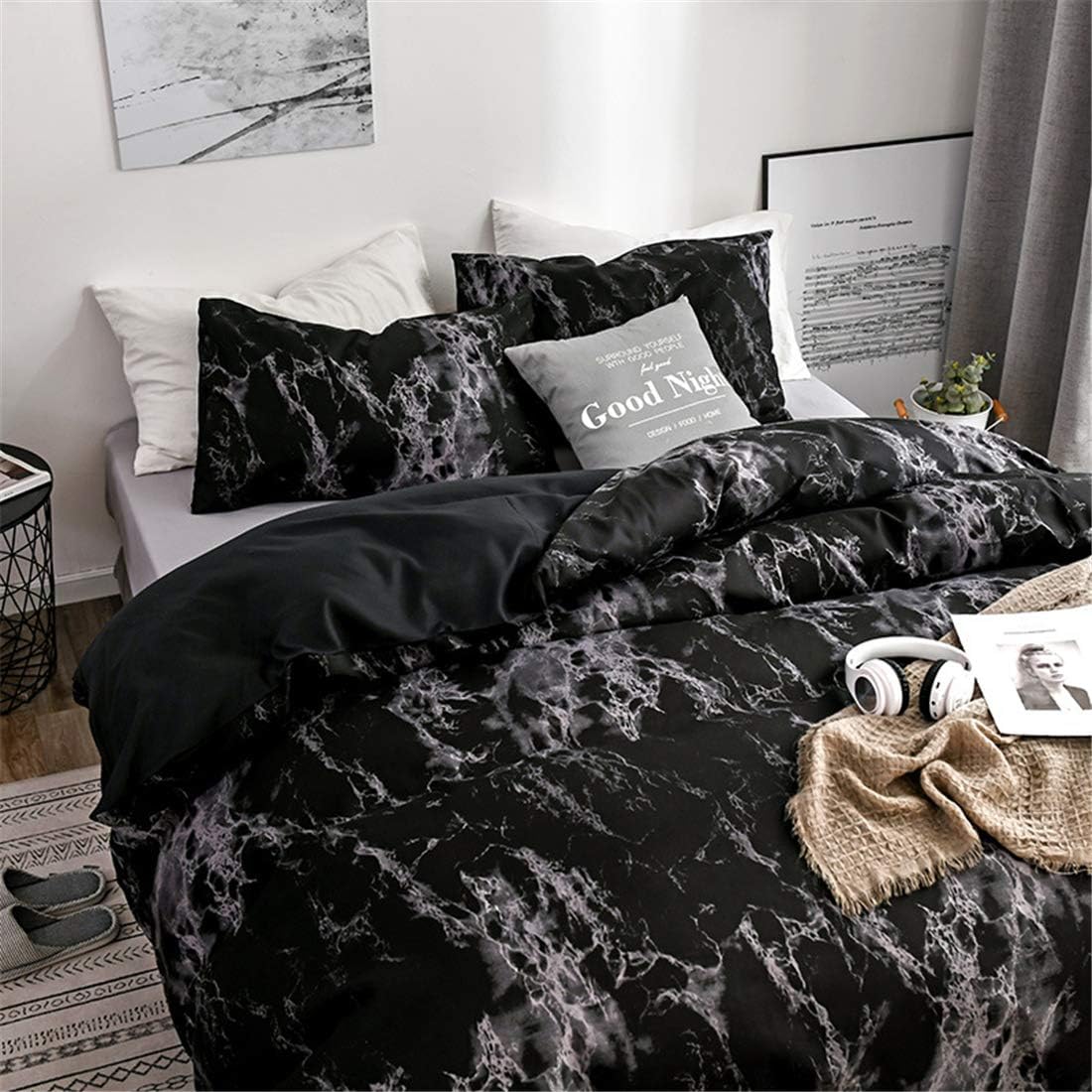 SIZE CHIOCE Twin: 1 Duvet Cover 59”x79” and 1 Pillow Cover 20”x28” Full: 1 Duvet Cover 79”x91” and 2 Pillow Cover 20”x28” Queen:1 Duvet Cover 90”x90” and 2 Pillow Covers 20”x28” King : 1 Duvet Cover 102”x91” and 2 Pillow Covers 20”x36” KEY FEATURES 100% MICROFIBER Our quilt cover sets are made of microfiber, which is soft, breathable and not easy to shrink. MARBLE PATTERN DESIGN This is a duvet cover specially designed for nature art Fans. If you or your child loves nature, you have to take marble pattern Duvet cover sets. This is definitely an amazing gift. METAL ZIPPER Mental Zipper has the most traditional zipper structure and the clutching teeth formation of zipper is made of metallic materials. Alloy zippers are more durable than ordinary plastic zippers. We chose the zipper opening to make it easier and less time consuming for you to change the quilt. PRINTED DUVET COVER The front and the back of the duvet cover is 3D Marble pattern using reactive dyes, it will be more environment-friendly and vivid, so both sides can face up . BEST SERVICE GUARANTEE Whenever you meet any problems, you could contact us and we will provide a replacement or full refund in time. ABOUT US Our company is committed to the design and production of floral quilts cover, and our design inspiration comes from nature. It is our mission to provide the soft and comfortable bedding for every consumer. We also produce washable bedding covers, couple bedding covers,3D marble bedding covers, etc. You can choose from our store at any time