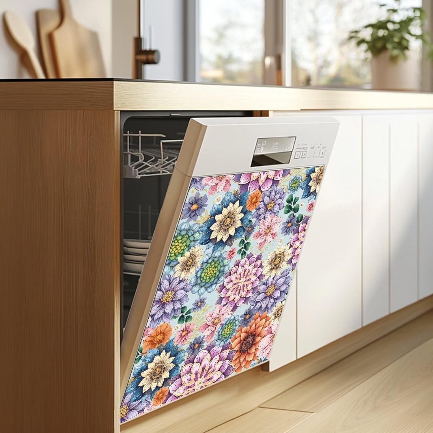 Hechitok Dishwasher Cover Magnet Material: This dish washer magnetic decorative sticker is made of magnets and polyester, and can be attached to magnetic objects without any adhesive. It is very convenient and will not leave any offset printing. Size: Our dishwasher door cover decals sheet size 22"W x 26"H inch,only suit for the magnet surface You can use on your dishwasher as well as on the kitchen refrigerator, kitchen countertops, walls, cabinets, drawers, sink cabinets, countertops, washers, dryers, metal door etc. Suitable for making housewarming gifts,hostess gifts,birthday Mother's Day Christmas Thanksgiving gifts for mom grandma wife aunt coworker neighbor or any friends. A variety of fashion prints are available to make you stand out from the crowd. Due to different measurement methods, errors within 1-2cm are normal.