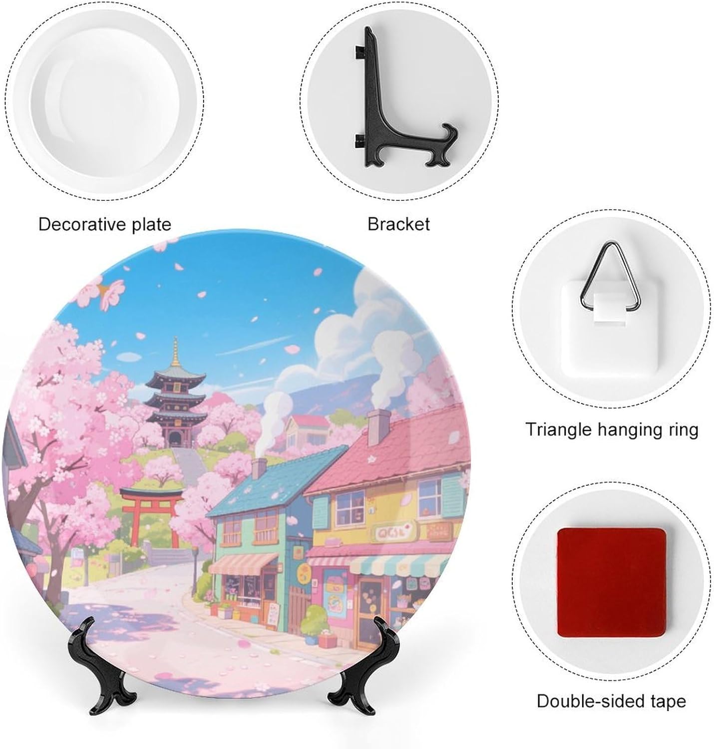 • Material Description: Sakura Town Funny decorative plate is made of bone china,exquisite and beautiful,art decor with a smooth surface that will not cut your hands,delicate and beautiful,installation is also very simple.