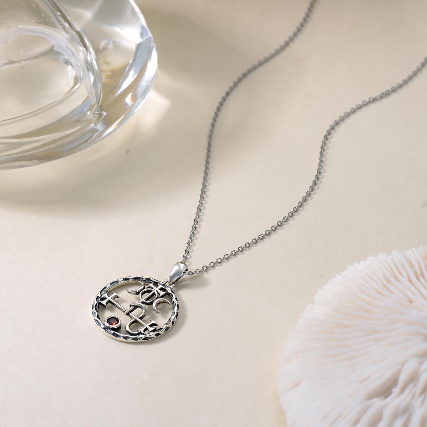 • Material: 925 Sterling Silver Lilith Necklace. Hypoallergenic, lead-free, nickel-free, cadmium-free. Vintage Oxidation, Red Cubic Zirconia. Excellent polishing technology makes every detail smooth and bright.