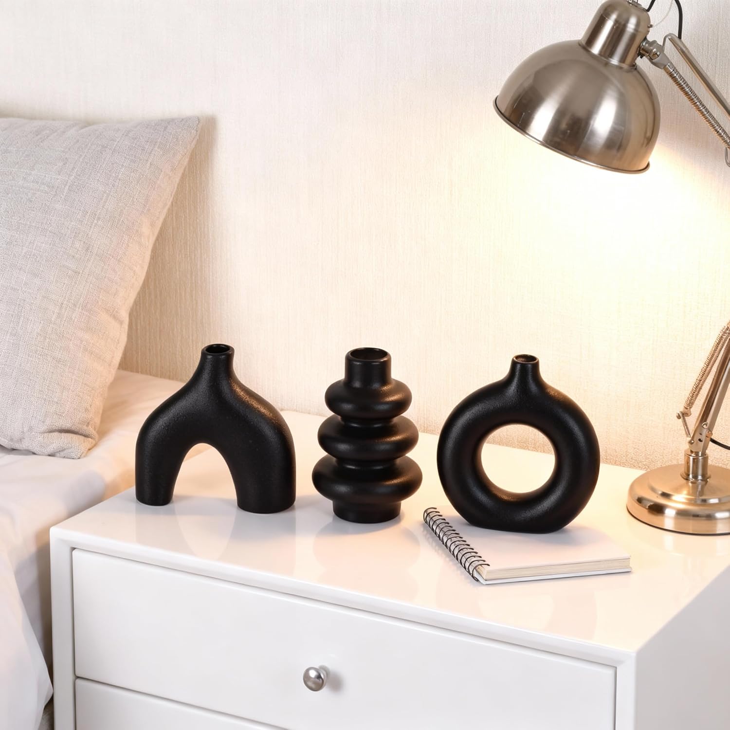 Elevate your space with this Ceramic 3 Pcs Vase Set—a curated collection of modern, minimalist pieces designed to blend Nordic and boho charm. Featuring three distinct silhouettes (arched, stacked spherical, and circular), this set is available in versatile color options: crisp white, textured black, and a muted Morandi palette (cream, dark gray, brown). Crafted from smooth, high-quality ceramic, each vase boasts a finish that balances understated elegance with artistic flair. Whether holding fresh blooms, dried pampas grass, or displayed empty as standalone decor, this set adds layered visual interest to living rooms, bookshelves, offices, entryways, or even wedding centerpieces, seamlessly complementing diverse interior styles.