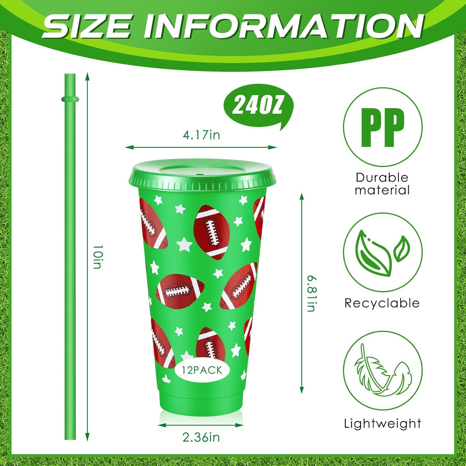 Features: Novelty gift: This football tumbler with straw can be a suitable gift for rugby enthusiasts or young athletes. It's portable, making it ideal for those who are always traveling, showing then your love and concern. Convenient capacity: This reusable football cups with lids and straws features a capacity of about 24 oz, providing ample space for a generous serving of your beverage. You won't have to constantly refill, making the tumbler very convenient for those long rugby matches. Specifications: Material: plastic Color: colorful Size: about 6.81 x 4.17 x 2.36 inches/ 17.3 x 10.6 x 6 cm Capacity: about 24 oz Package includes: 24 x Football cups Notes: Manual measurement, please allow slight errors on size. The color may exist a slight difference due to different screen displays.