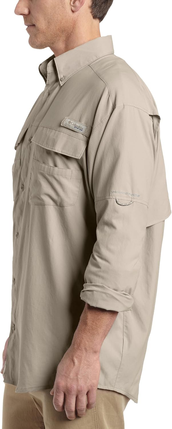 Ideal for warm weather fishing, it’s designed with UV-protective fabric and a flip-up collar that secures under the chin to keep the sun off your neck. Other functional details include a fully vented mesh-lined back for enhanced airflow, rod holder, and two roomy hook and loop closed fly box pockets at the chest. Radial sleeves enhance mobility for big casts and can be rolled up and secured with button tabs at the elbow. Relaxed fit.
