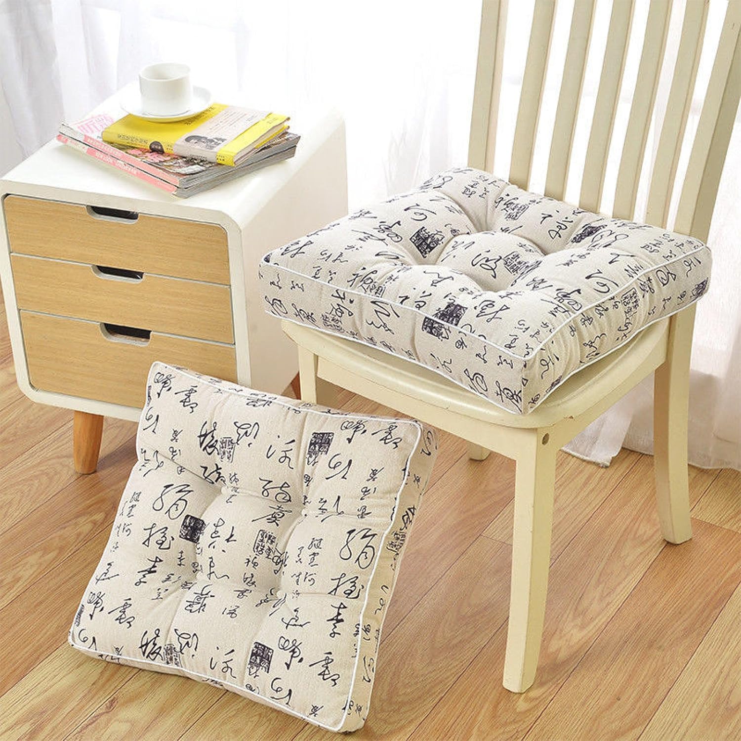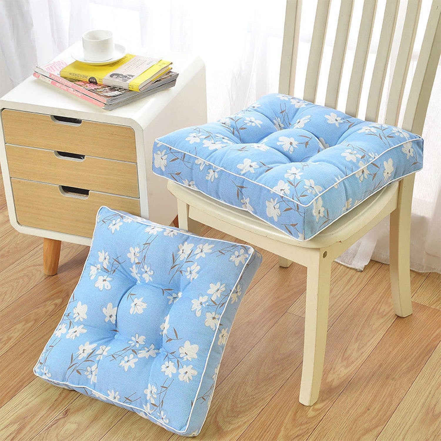 Floor Pillow Meditation Cushion Floor Seating for Adults Oversized Tufted Seat Cushion Yoga Meditation Pillow for Sitting on Floor Kitchen Chair CushionThis full and soft tufted floor mat can perfectly fit the curve of the buttocks, and greatly reduce the pressure on the buttocks and waist caused by sitting for a long time. Suitable for most office chairs, tables and chairs, dining chairs, car seats and airplane velvet cushions, combined with perfect stitching and high-quality materials, it will give you a comfortable and breathable sitting and standing environment, allowing you to sit comfortably enjoy life on the mat!PACKAGE INCLUDE:2× Chair CushionsFeature DesignThe tufted floor pillow cushion features fine workmanship with 4 positioning circle tack prevent the filling inside from moving and dislocation, 3.9" in thickness, perfect as a floor seating cushion.Pain ReliefThis thick floor pillow is great for reading nooks, watching TV on the floor, and is more comfortable than rugs or mats. This thick velvet pillow seat is a high quality meditation cushion, yoga pad and tatami cushion.Our comfortable chair cushions are available in a variety of colors and will match perfectly with your room decor. They are great floor pillow, meditation cushion, office chair cushions, rocking chair cushions, patio chair cushions, outdoor chair cushions, dining chair cushions, lawn chair cushions, camping chair cushions, kitchen chair cushions, or any other chair or bench that needs a little more cushion.