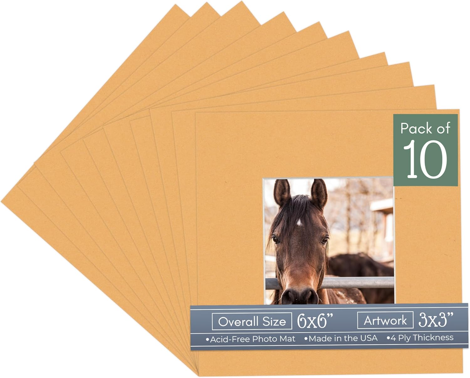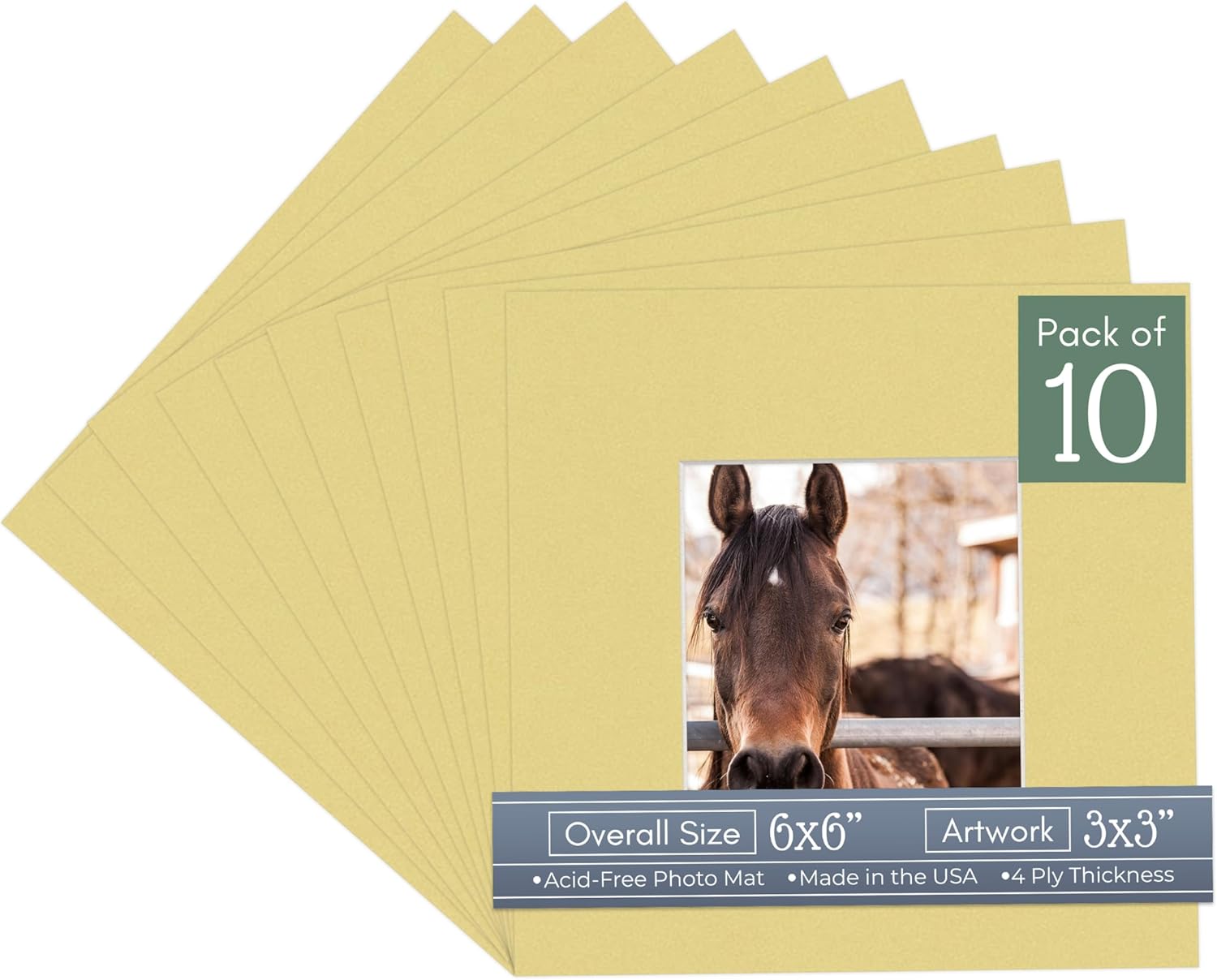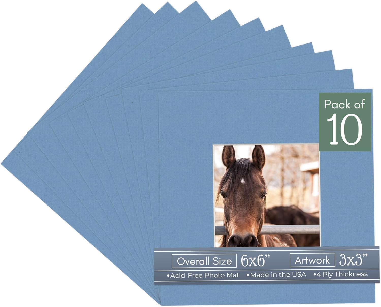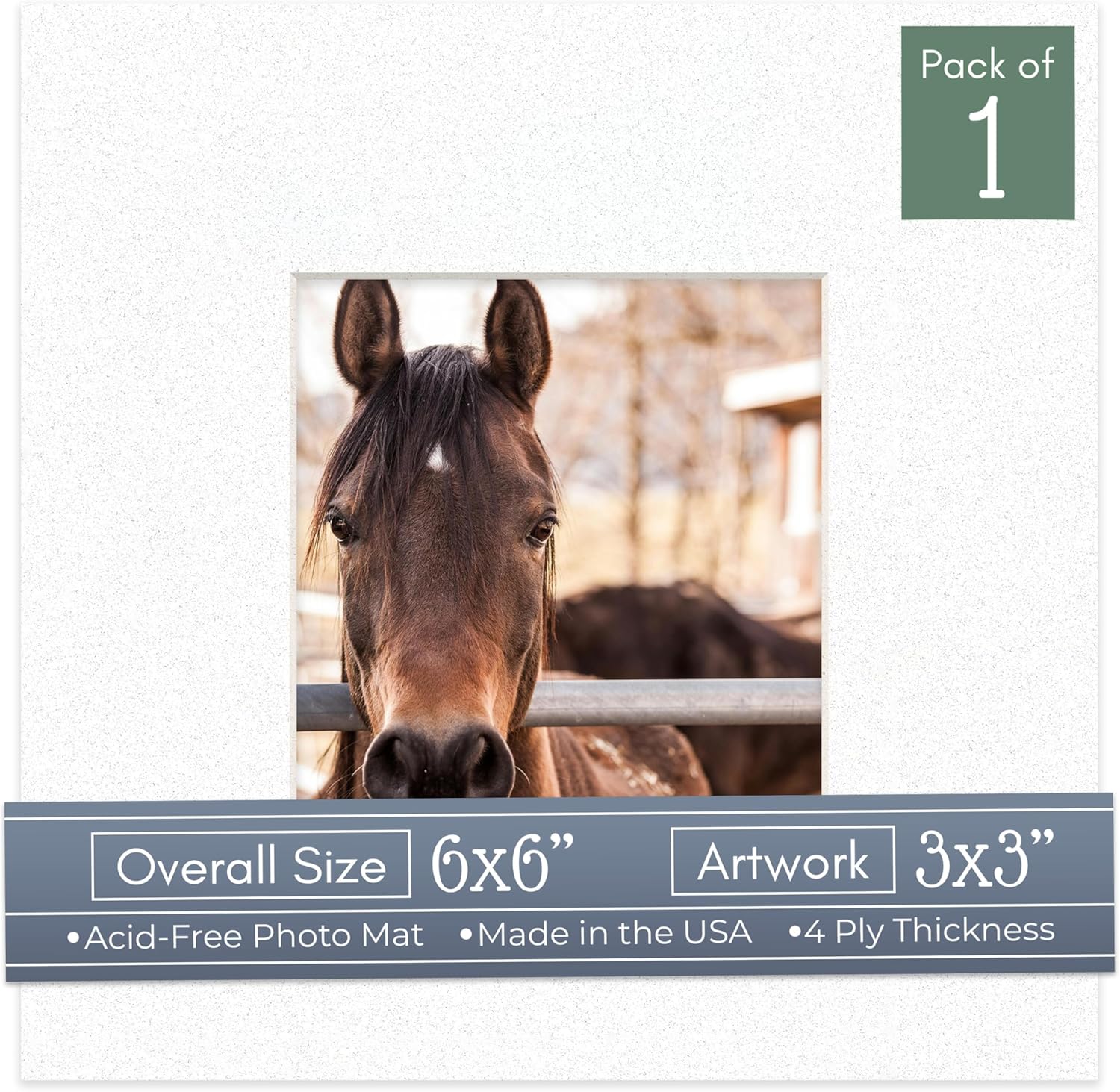 Our acid-free Fresh Linen Canvas matboards are 4-ply and feature a white core. With an overall size of 6x6, these mats with Square openings fit perfectly into 6x6 frames and are bevel cut to showcase your 3x3 photos. Actual mat opening size is 2.5x2.5 inches so that it may safely and securely house your 3x3 photo, artwork, needlepoint, sign, etc. This pack includes 10 Matboards. Proudly made in the USA by Country Art House!