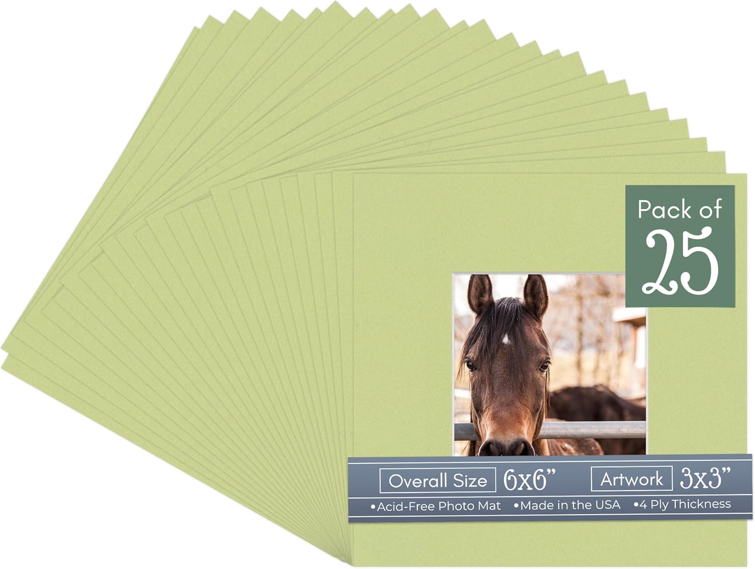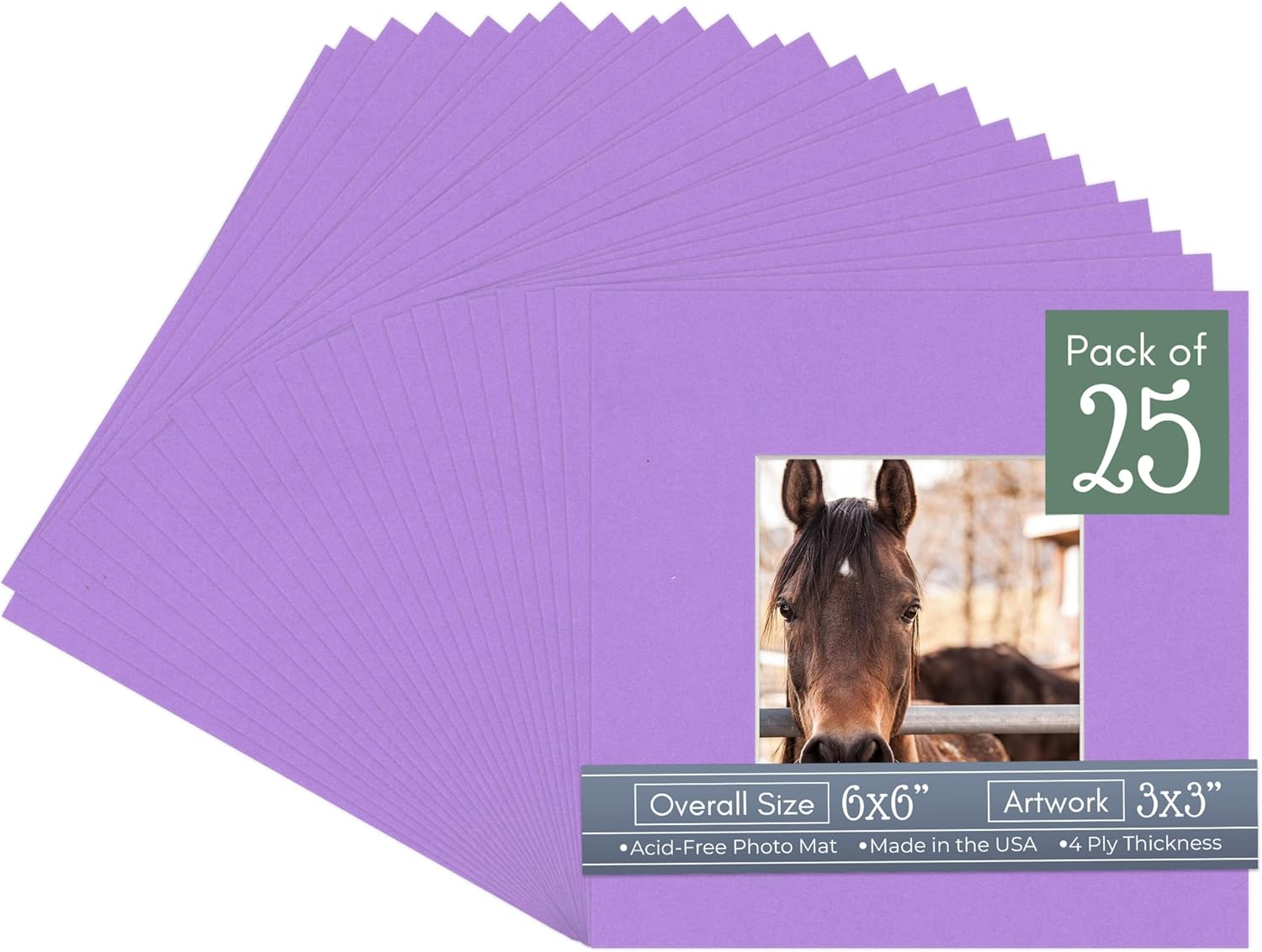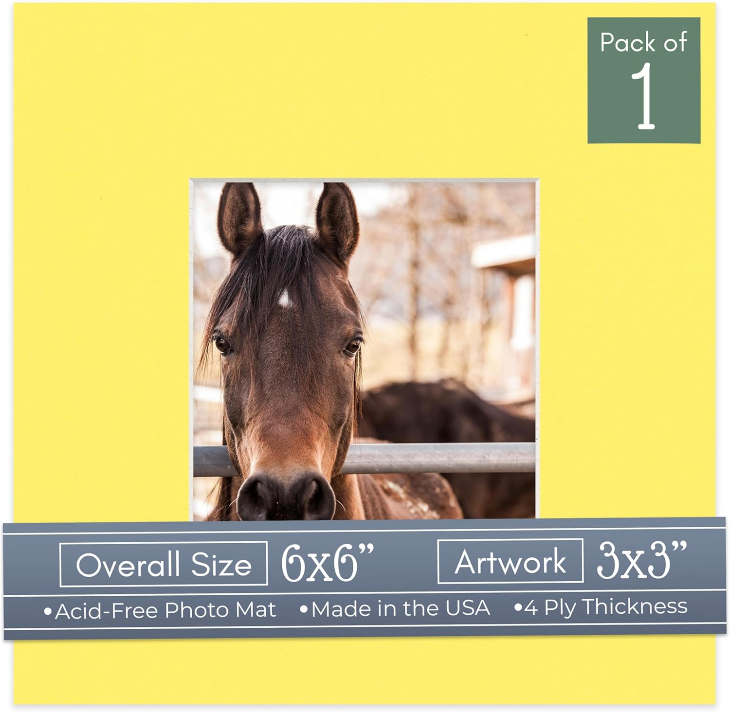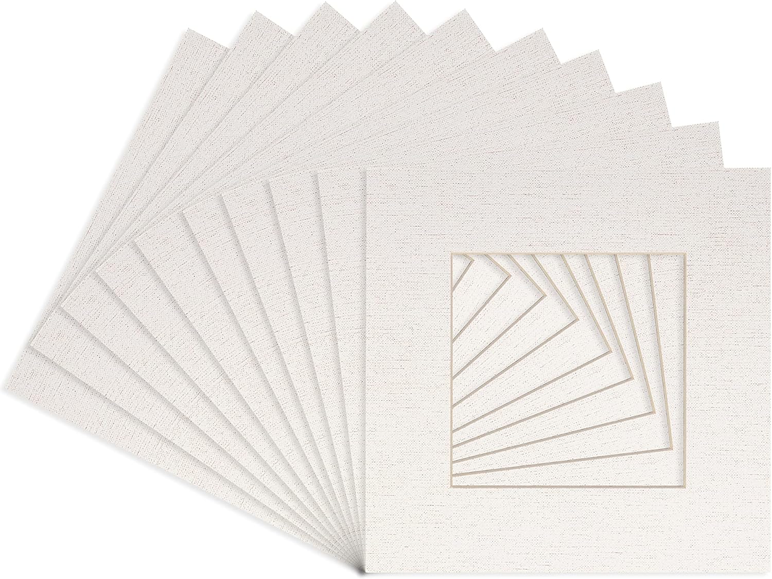 Our acid-free Fresh Linen Canvas matboards are 4-ply and feature a white core. With an overall size of 6x6, these mats with Square openings fit perfectly into 6x6 frames and are bevel cut to showcase your 3x3 photos. Actual mat opening size is 2.5x2.5 inches so that it may safely and securely house your 3x3 photo, artwork, needlepoint, sign, etc. This pack includes 10 Matboards. Proudly made in the USA by Country Art House!