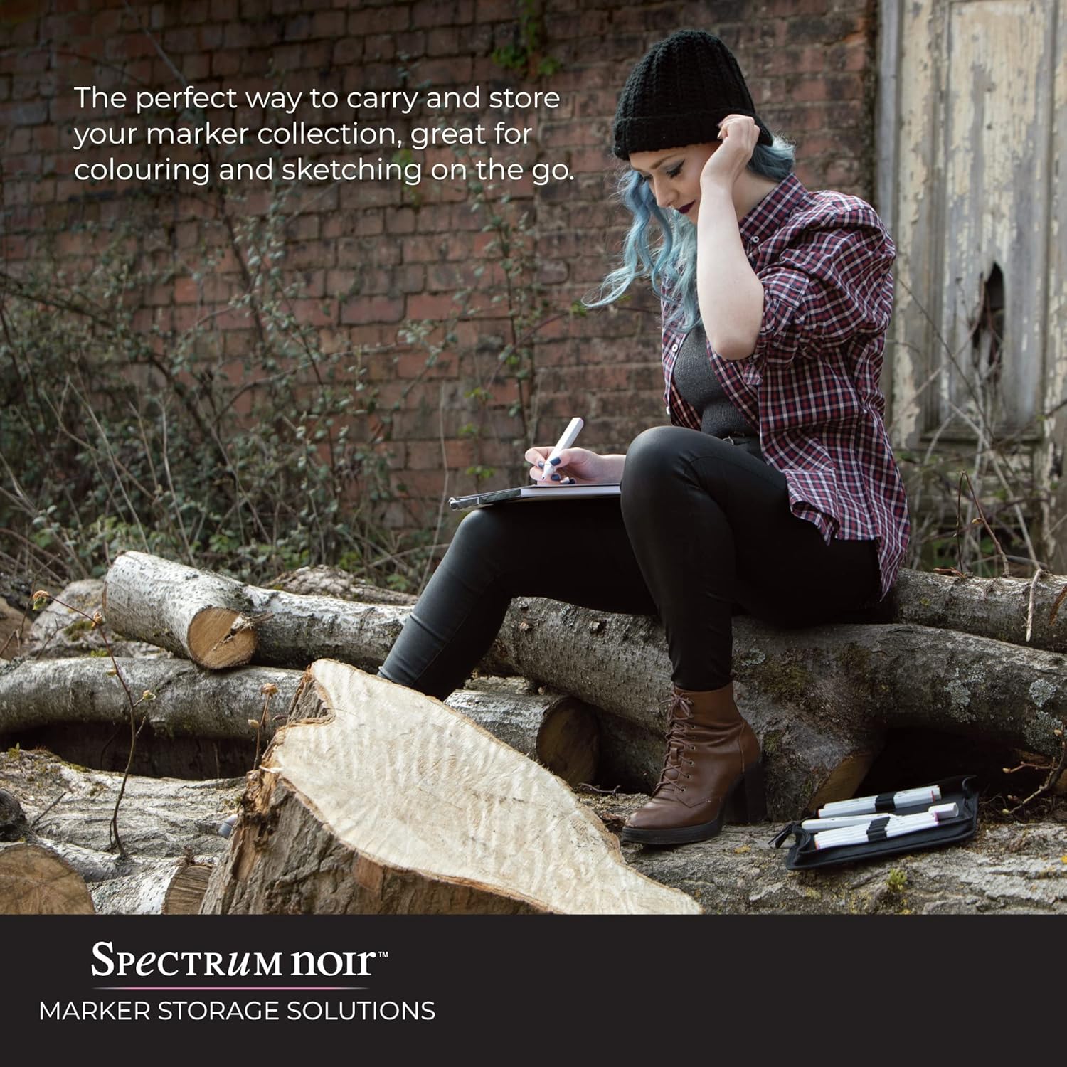 Take your creativity on the go with this essential marker storage case! It opens to feature two large interior pockets on each side for cardstock or other craft items and tools along with two middle sections with elastic tabs to hold 48 markers. Flip the top over to close and secure with the hook and loop strip. A convenient handle makes it easy to carry or add the clip-on adjustable strap to place on your shoulder. The package includes case with adjustable carrying strap and measures approximately 13 x 12. 5 x 2. 5 inches. Imported.