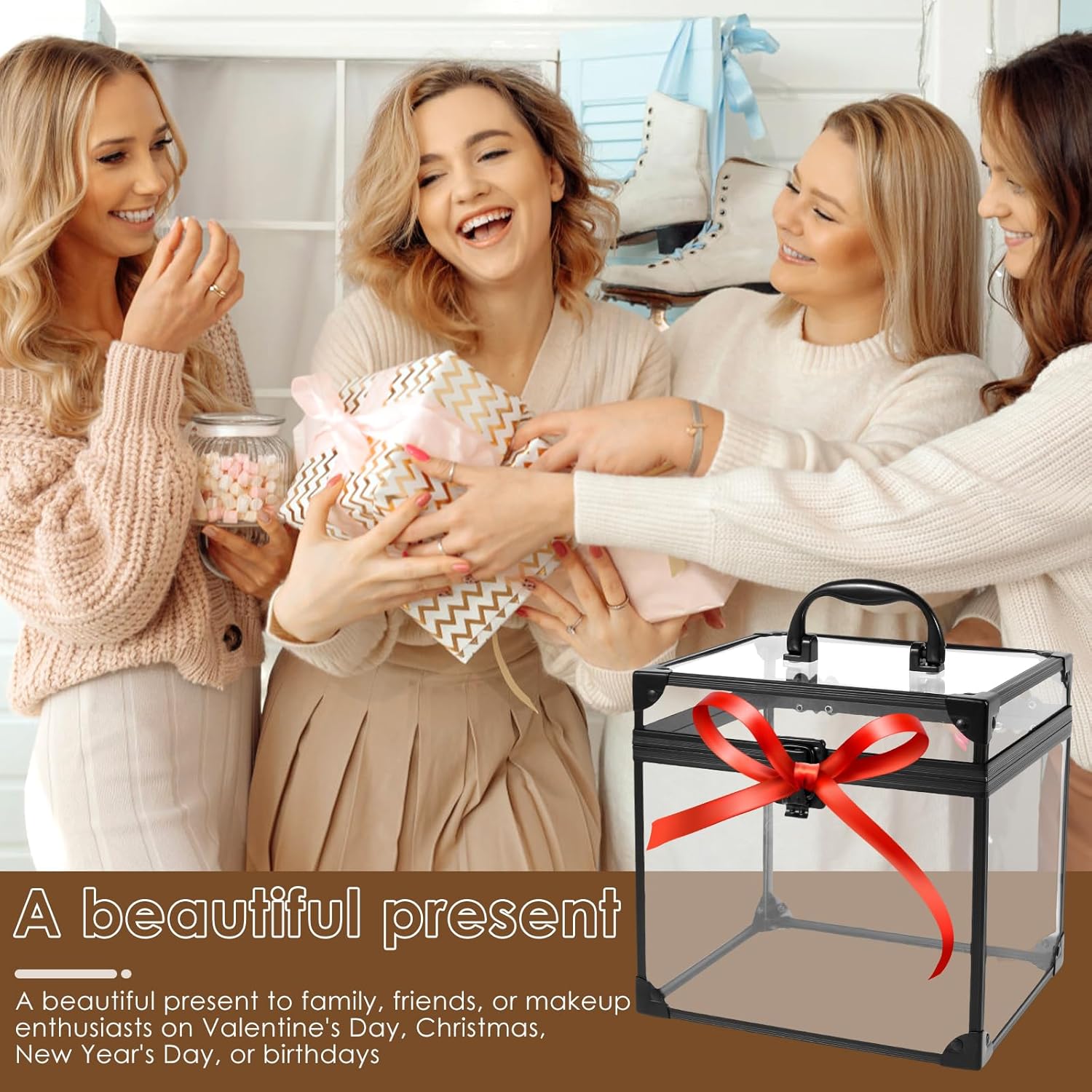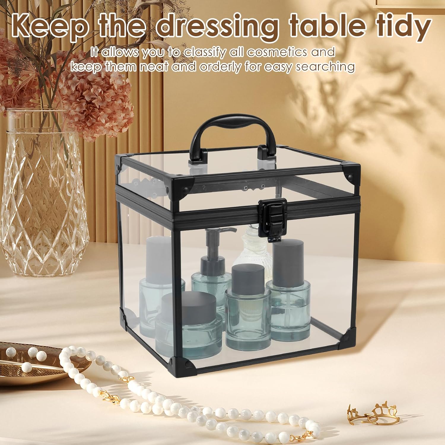 Parts List:1 x Clear Cosmetic CaseDescription:This cosmetic case measures approximately 7.9 x 6.7 x 7.5 inches, which provides ample storage space for your cosmetics. Equipped with a handle, it is easy to carry and convenient for traveling. The latch provides security for your valuables. Very suitable for makeup artists and enthusiastsKey Feature:Transparent Design: This makeup box organizer is designed with a transparent appearance, making it easy to find what you needGift Options: This clear makeup case is a thoughtful and practical gift for family and friends who love makeupSpecification:Product Name: Makeup BoxMaterials: PET+AlloySize: about 20x17x19cm/7.9x6.7x7.5inColor(optional): Black, SilverNote:1. Cosmetics are not included2. There may be slight differences between the picture and the actual color of the commodity. We will try our best to show you the exact color3. Please allow slight dimension differences due to manual measurement
