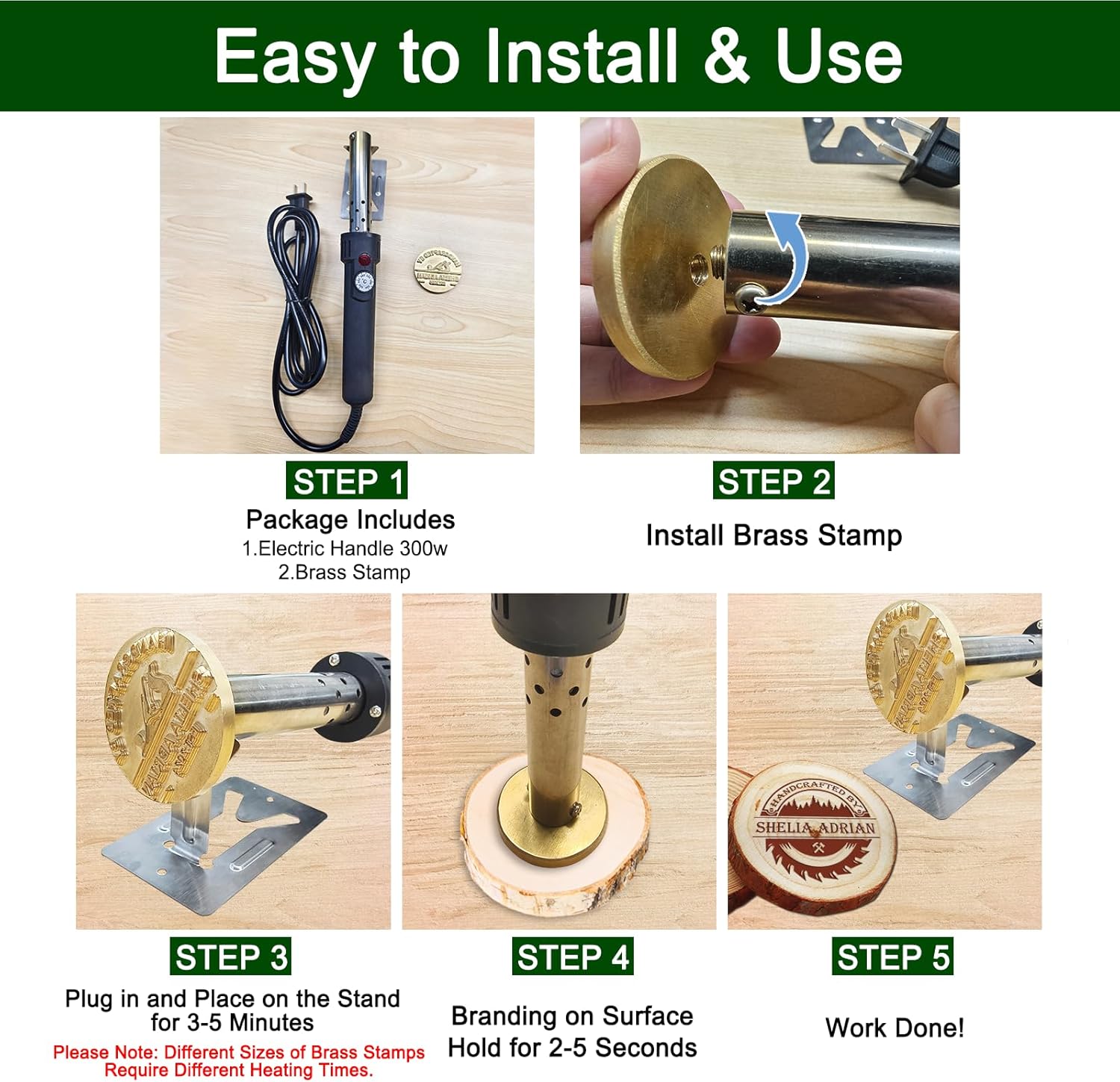 [How to Customize]: 1.Select the style and stamp size you want (You can choose between heated or plug-in models) and click "Customize Now".2.Then select the logo design you want and enter your text.[Size Detail]: For details, please refer to Attachment Image)[Notes]: When using electricity and fire, be sure to pay attention to safety. I sincerely hope that my customers can maintain good health.[After-sales Service]: If you have any question or requirements about your order or customization, please feel free to contact us. We will do our best to meet you.