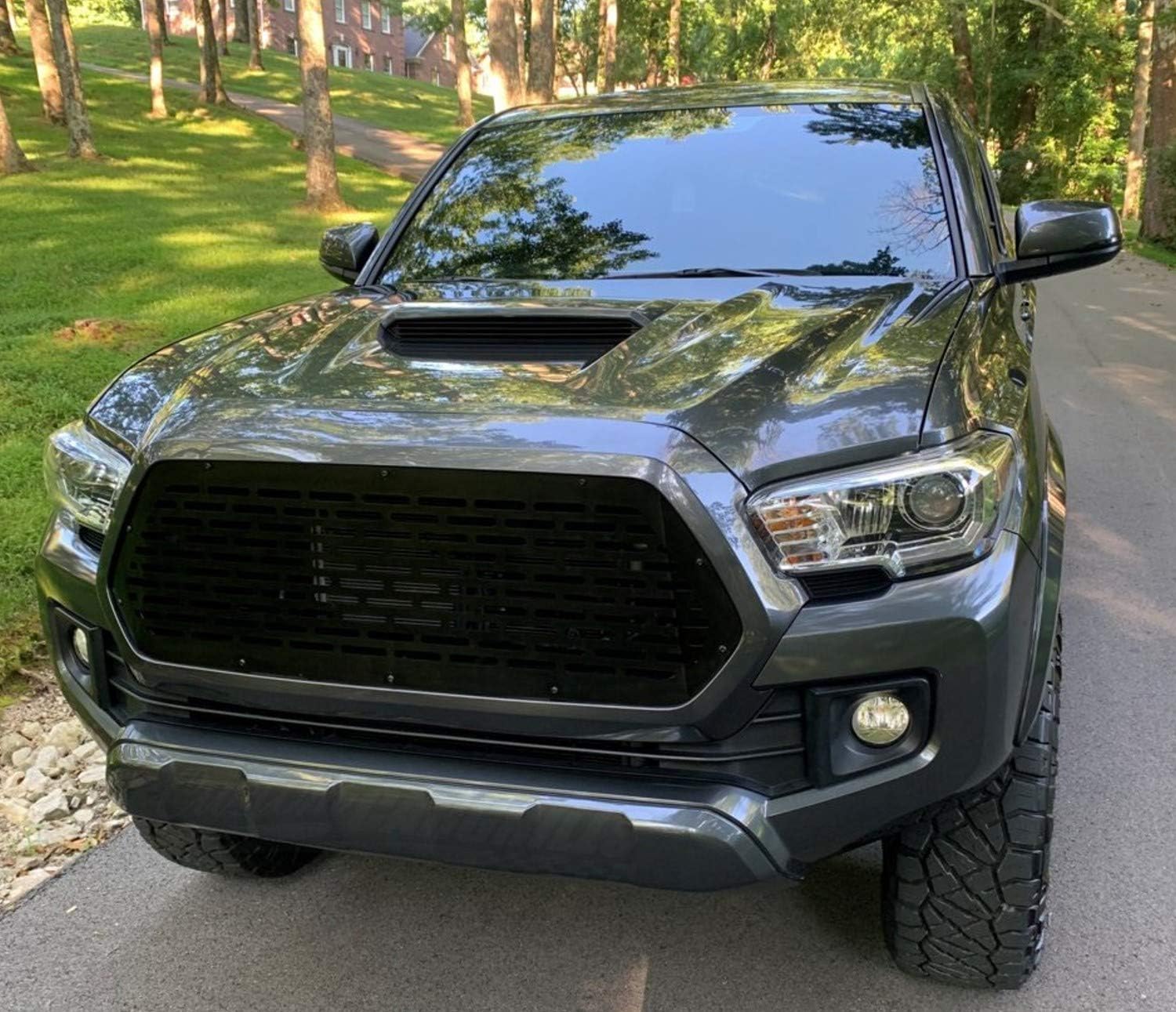 This all black replacement grille will replace the factory chrome grill components on your 2016-2017 Toyota Tacoma. The grill is a direct swap with your stock components and is a quick and easy installation that requires no cutting or drilling. The grille is stainless steel, so no worrying about this rusting out. The grill has no badging on it, and looks very clean on any Tacoma.
