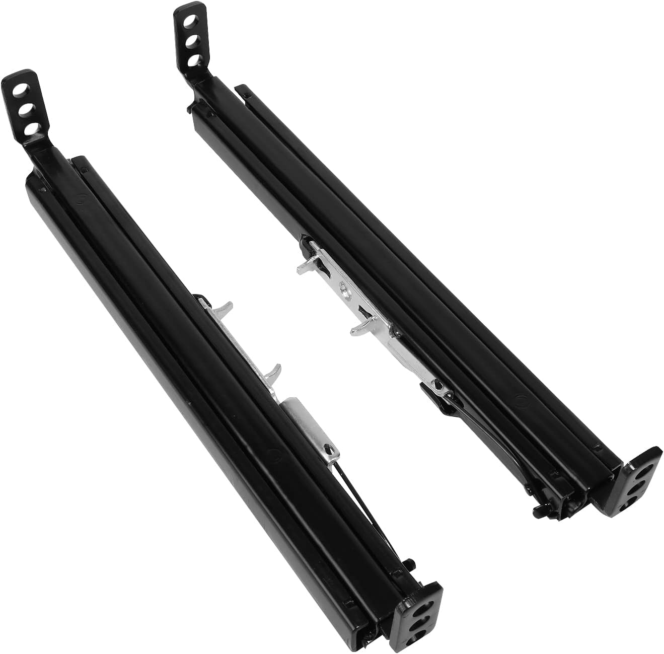 Universal dual locking sliders are used for side mounted or bottom mounted seats. Powdercoated Steel Construction with a Slider Adjuster that can be used on Driver or Passenger Side