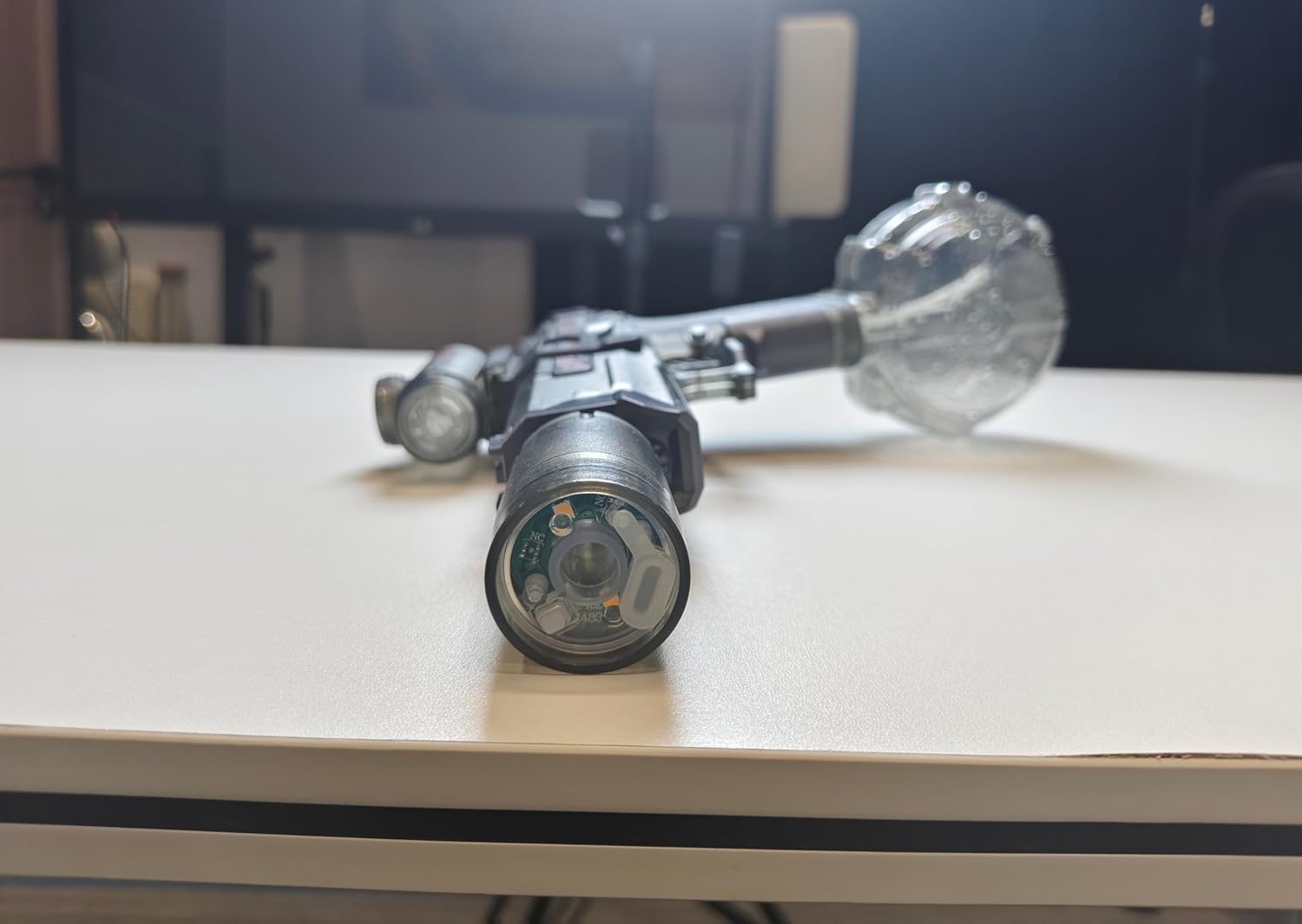 | Special Features | LED light effects, automatic water spraying, large water tank, transparent body structure with visible internal components |
