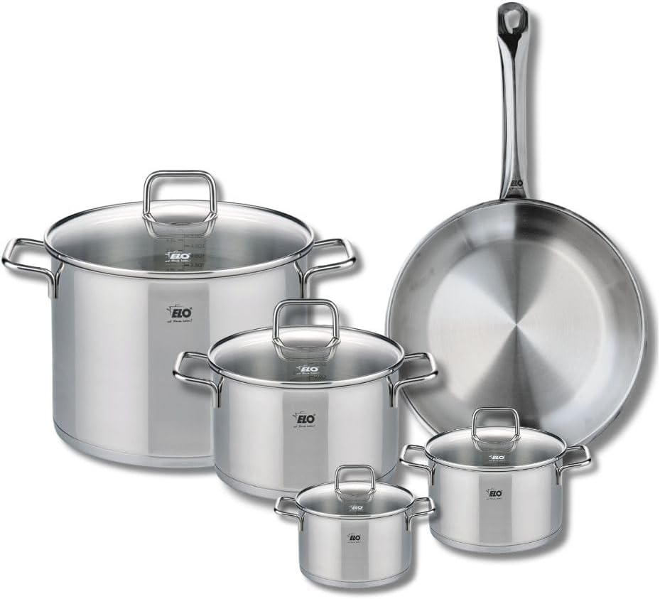Discover the Elo Profi Citrine kitchen set consisting of a 28 cm frying pan and four cooking pots with 12, 14, 16 and 26 cm. Made of high quality stainless steel, these kitchen gadgets are perfect for all your culinary needs. The 28cm pan is ideal for searing, searing and preparing a variety of dishes, while the cooking pots offer diverse skills for braising, steaming or preparing delicious soups and stews. With their stainless steel construction, these products guarantee exceptional robustness and even heat distribution for optimal cooking. In addition, they are compatible with all types of heat sources including induction, making them a versatile choice for any kitchen. With no coating and PFAS free, these utensils are also safer for your health and the environment. Their care is facilitated by its smooth surface, which is resistant to stains and corrosion. Whether you are a home chef or an experienced chef, this Elo professional citrine set will meet your expectations for performance and quality. Equip your kitchen with this complete set and prepare delicious meals for your family and friends.
