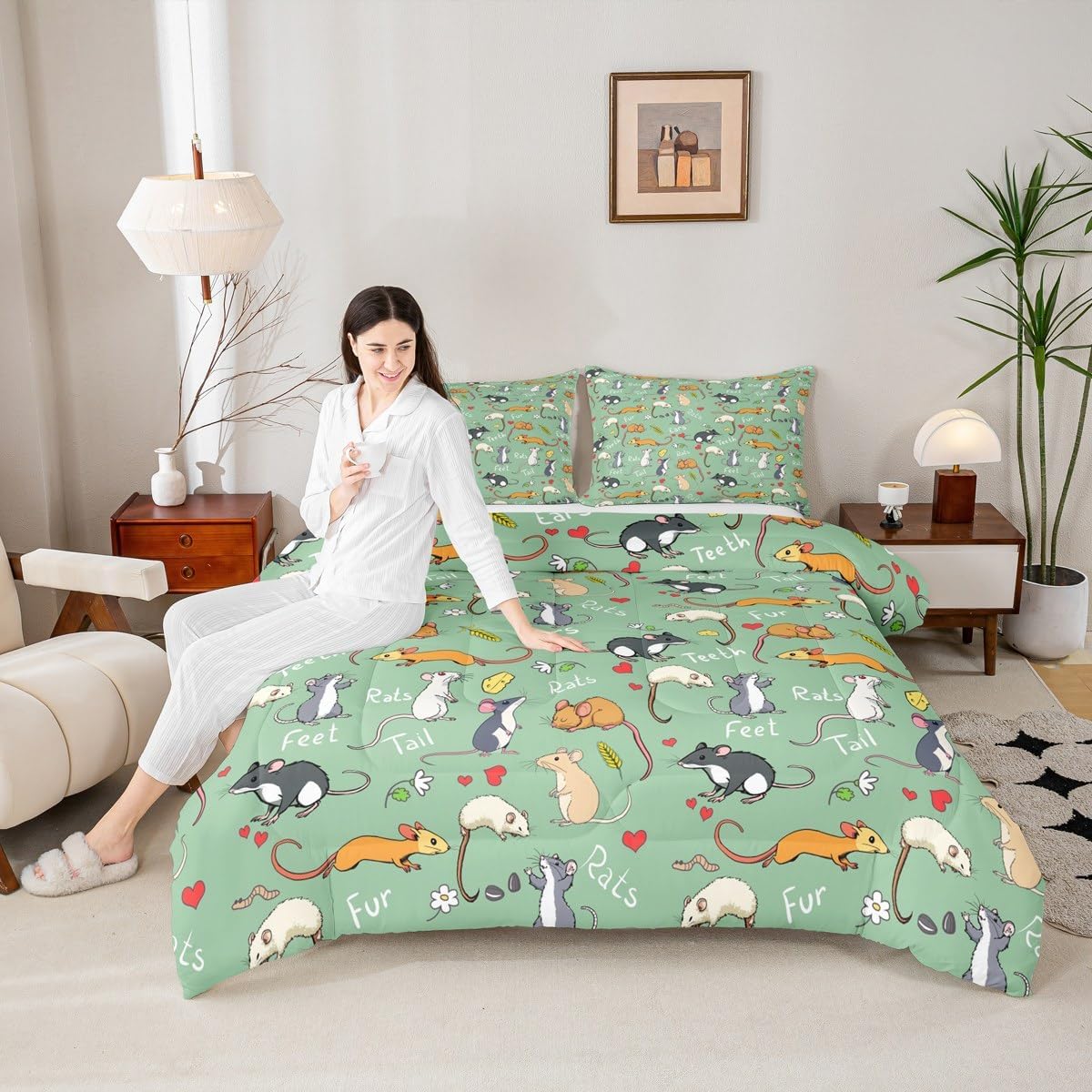 Welcome to our store. We have specialized in home textile for many years. We are committed to providing customers with comfortable products. Size Information Twin size: 1 Down Comforter (68"W x 90"L) and 1 Quilted Pillowcase (30"W x 20"L). Full size: 1 Down Comforter (79"W x 90"L) and 2 Quilted Pillowcases (30"W x 20"L). Queen size: 1 Down Comforter (90"W x 90"L) and 2 Quilted Pillowcases (30"W x 20"L). King size: 1 Down Comforter (104"W x 90"L) and 2 Quilted Pillowcases (36"W x 20"L). Versatility We have many kinds of styles for you to choose. You can easily find a product that suits the style of your room. The item is not only fits your home (bedroom, guest room, living room, etc) or RV, but also a present for holidays or anniversaries (Christmas, New Year, Halloween, Thanksgiving day, birthday, etc) for people who you love (your families, friends, relatives, boyfriend,girlfriend). Modern Design The luxury aesthetic comforter set is made by reactive printing and dyeing process. The pattern is clear, the color is lasting and bright, which will not fade after repeated washing. No harmful chemicals or dye substance. Personalized As a manufacturer of digital printed home textiles, we follow current trends and bring you the latest and stylish home textile products. The item will make the room decorated in exquisite taste. We sincerely hope you'll love the bed set.