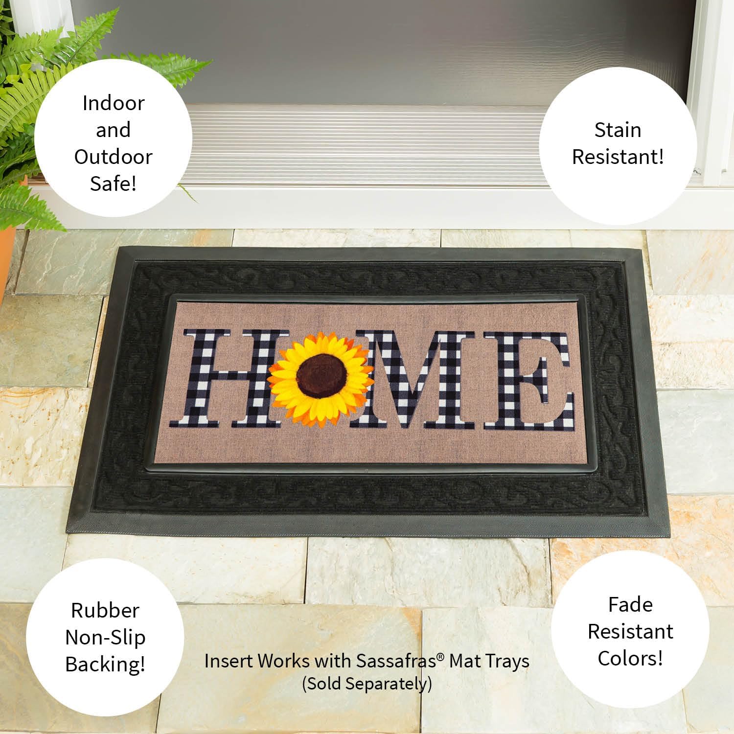 Our incredible Sassafras Mats are a fabulous way to have easy, year-round personality right at your doorstep! Interchangeable and durable, they welcome visitors and let everyone see your style. These mats are also a great gift idea for housewarming parties, new neighbors or for anyone who appreciates well-crafted home decor accents. Sassafras Switch Mats work with the Sassafras bases and are the perfect fit for our mat tray. Measures approximately 10 inches W x 22 inches L x 1/8 inch D. It is conveniently made from polyethylene with rubber backing to hold in place. Spot clean only. Evergreen Flag is the perfect "Greeting Card of Your Home." Well made and perfect for seasons to come.