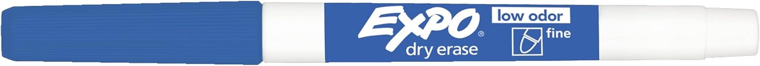 Expo Low Odor Dry Erase Markers feature bold ink that's easy to see from a distance and provides consistent color quality. These Expo dry erase markers erase cleanly and easily from whiteboards and other nonporous surfaces with a dry cloth or Expo eraser. The dry erase marker ink is specially formulated to be low-odor making it perfect for use in classrooms, offices and homes. Use your Expo whiteboard markers to track, schedule and present. Marker Type: Dry Erase; Color(s): Blue; Tip Type: Fine; Ink Types: Low Odor; Non-Washable.
