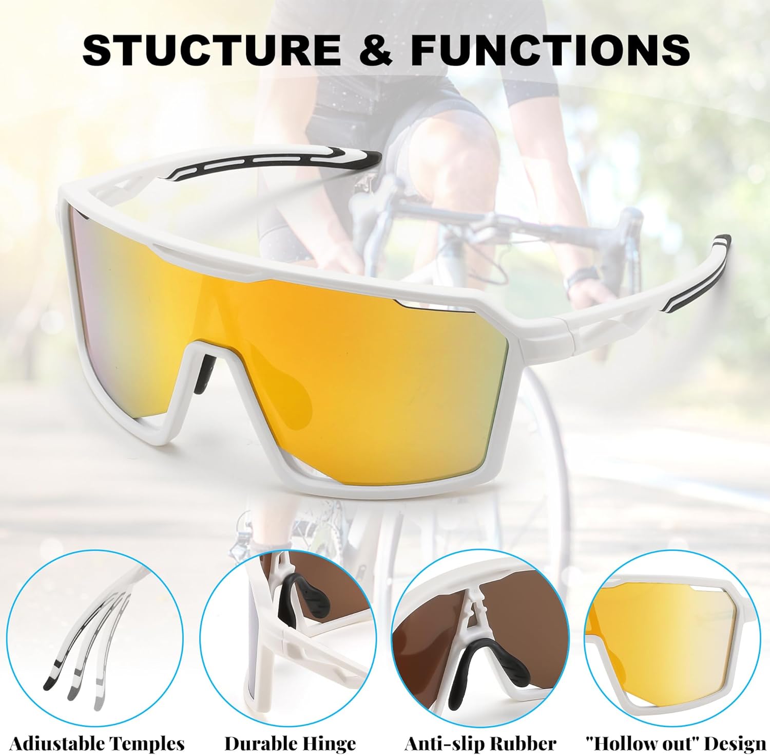 | Color | White Frame Gold Mirrored Lens |