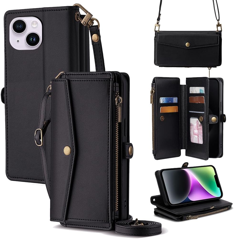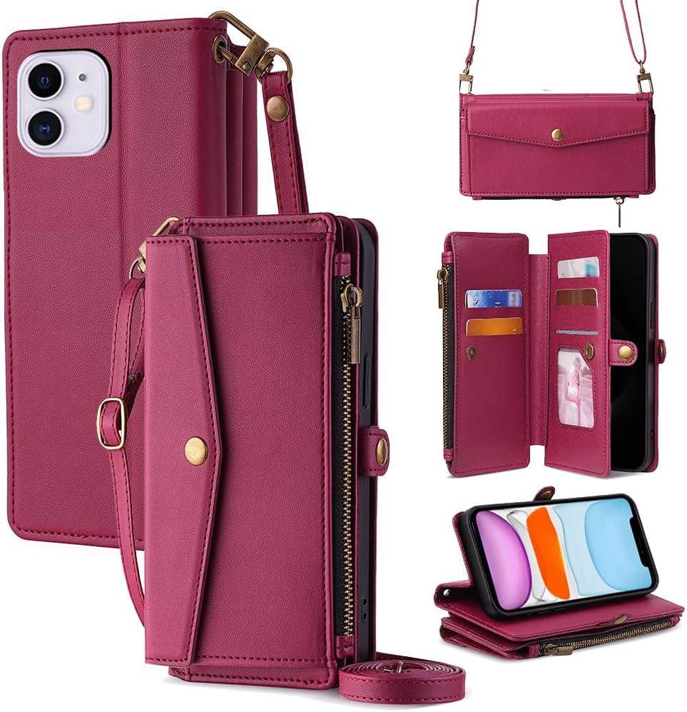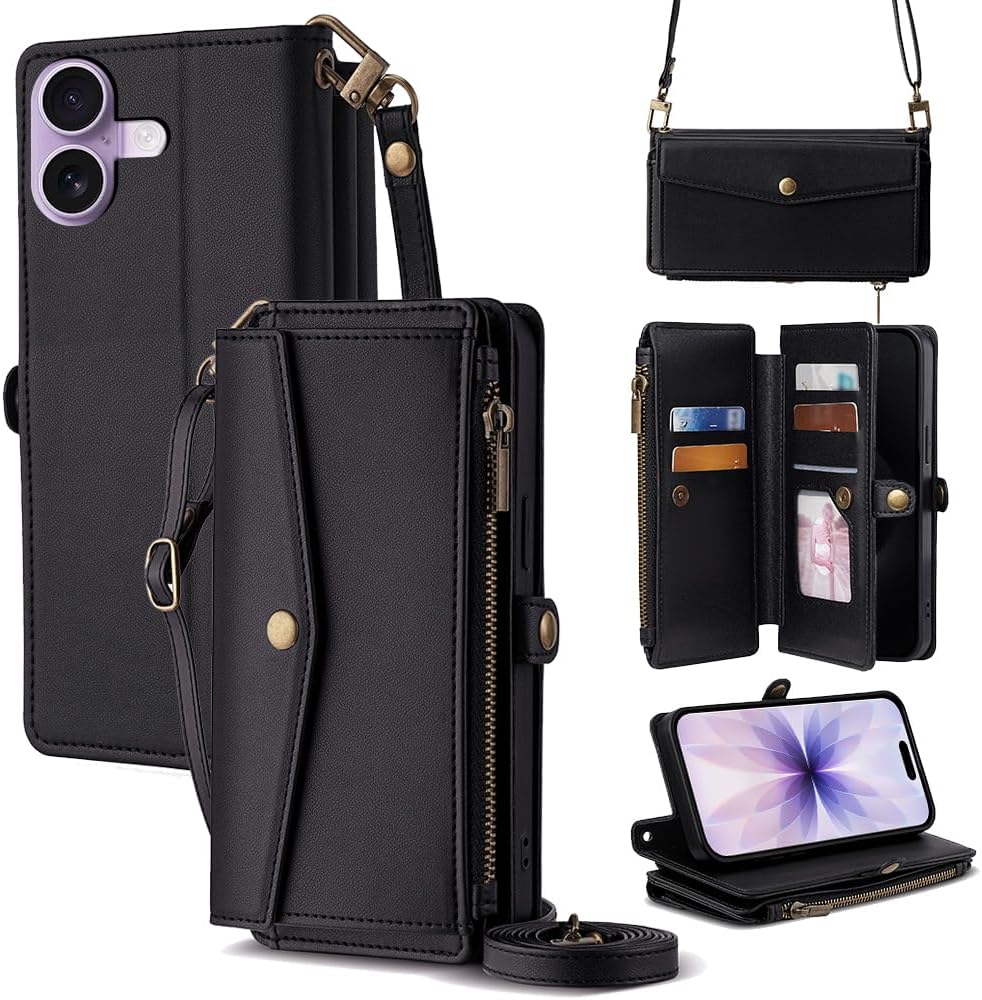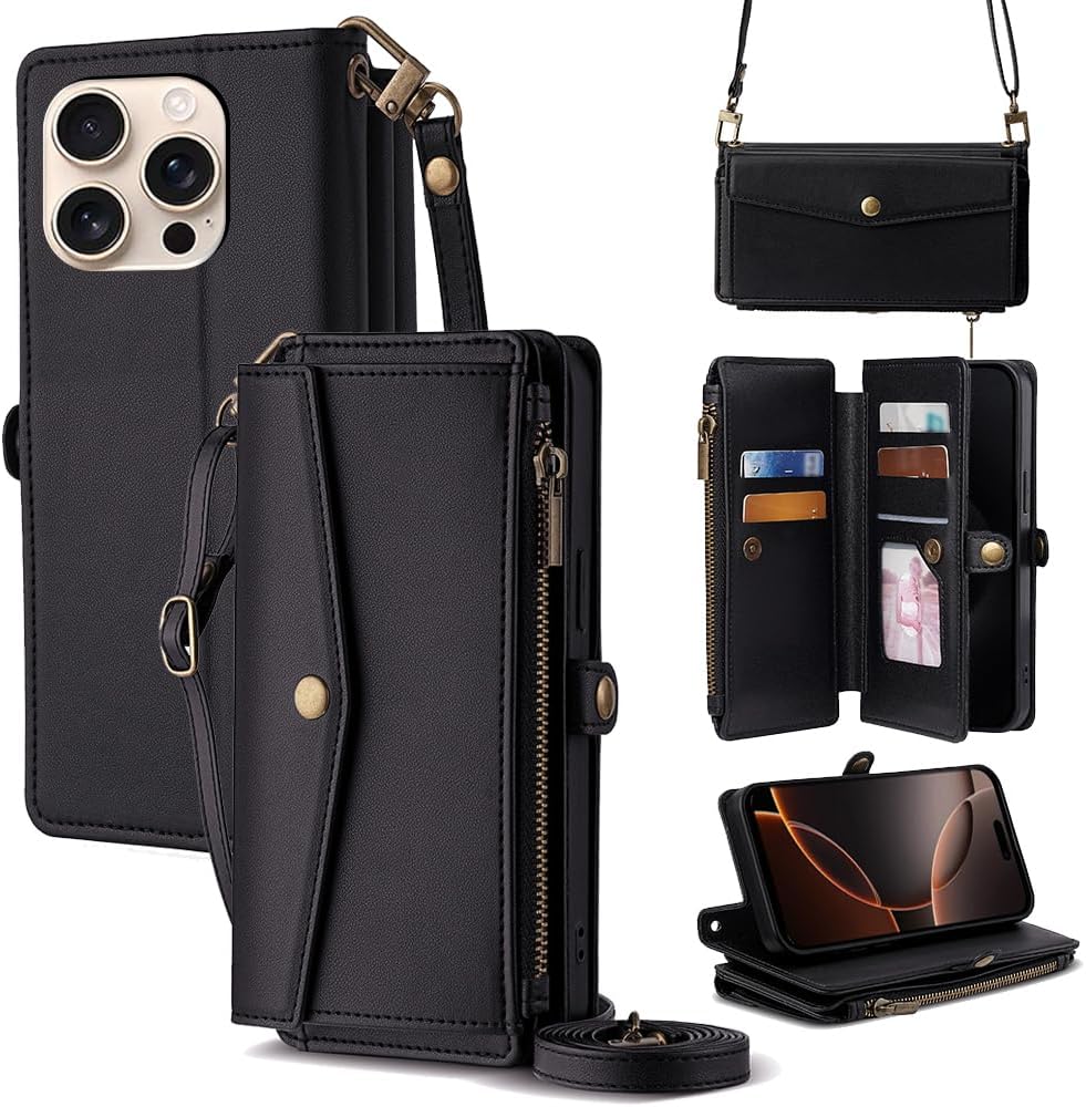Cacheluna for iPhone Folio Wallet phone Case for iPhone XR Cash and card storage Adjustable convertible strap for shoulde crossbody hand carry Multi-function kickstand