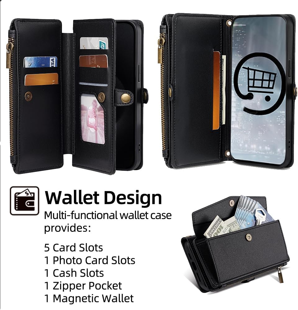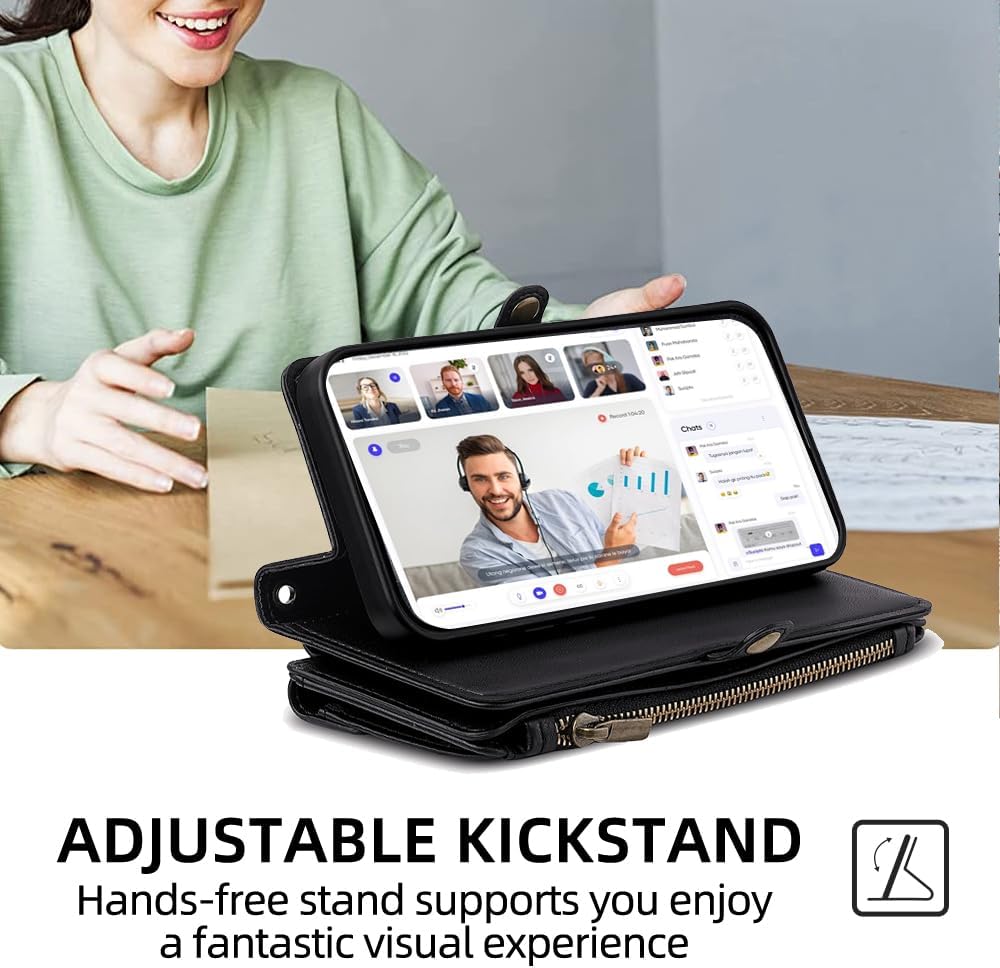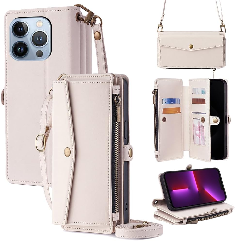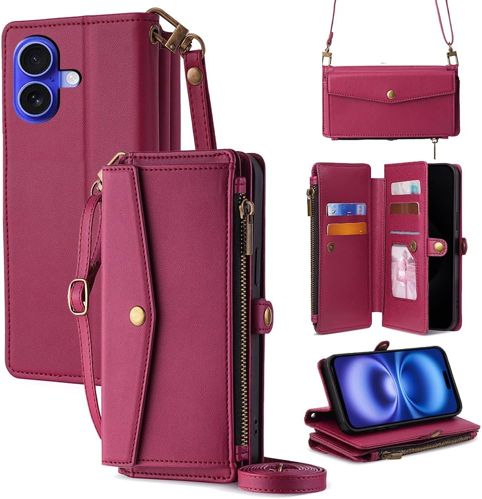 Cacheluna for iPhone Folio Wallet phone Case for iPhone XR Cash and card storage Adjustable convertible strap for shoulde crossbody hand carry Multi-function kickstand
