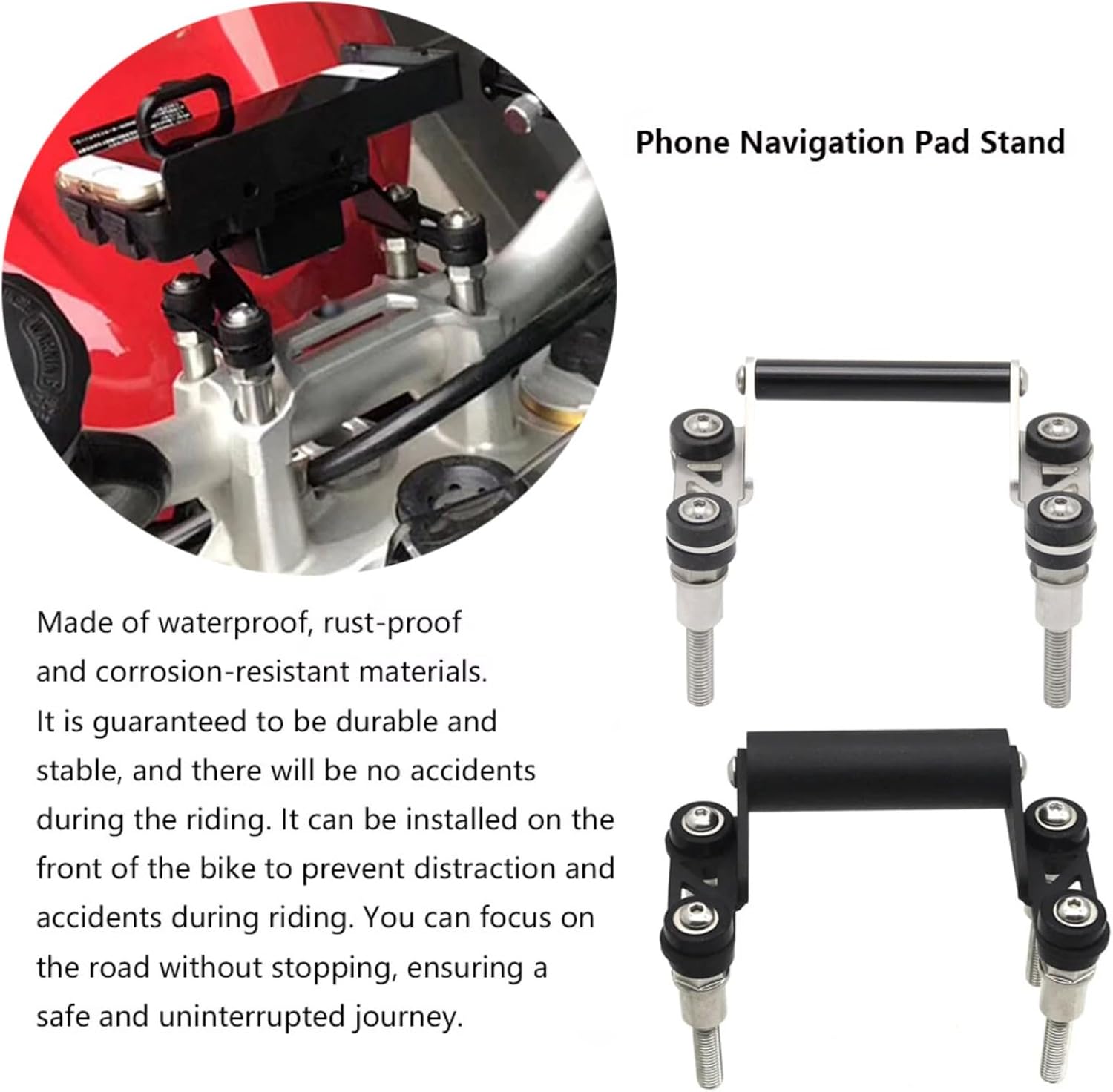 *By securing your phone in the correct position, riders can check navigation information, easily plan their cycling route, and avoid traffic jams while cycling. This feature is especially important for long-distance cycling or riding on unfamiliar roads. For example, while riding a motorcycle, riders can use their phone's navigation software to accurately locate destinations, gas stations, maintenance shops, and other locations. *The multifunctional phone extension crossbar and navigation bracket securely holds your phone in place, preventing it from falling or moving when subjected to impacts or vibrations while riding. This ensures your phone is always in the correct navigation position when riding on rough terrain such as steep mountain passes or gravel roads, preventing shaking from affecting normal use. *The functional extension horizontal rod can provide a location for other accessories, such as a camera, which is convenient for riders to record their journey while cycling. Mounting other devices, such as a cigarette lighter, can also provide a power interface for other small devices that require electricity. The mounting location enhances the functionality of your motorcycle.