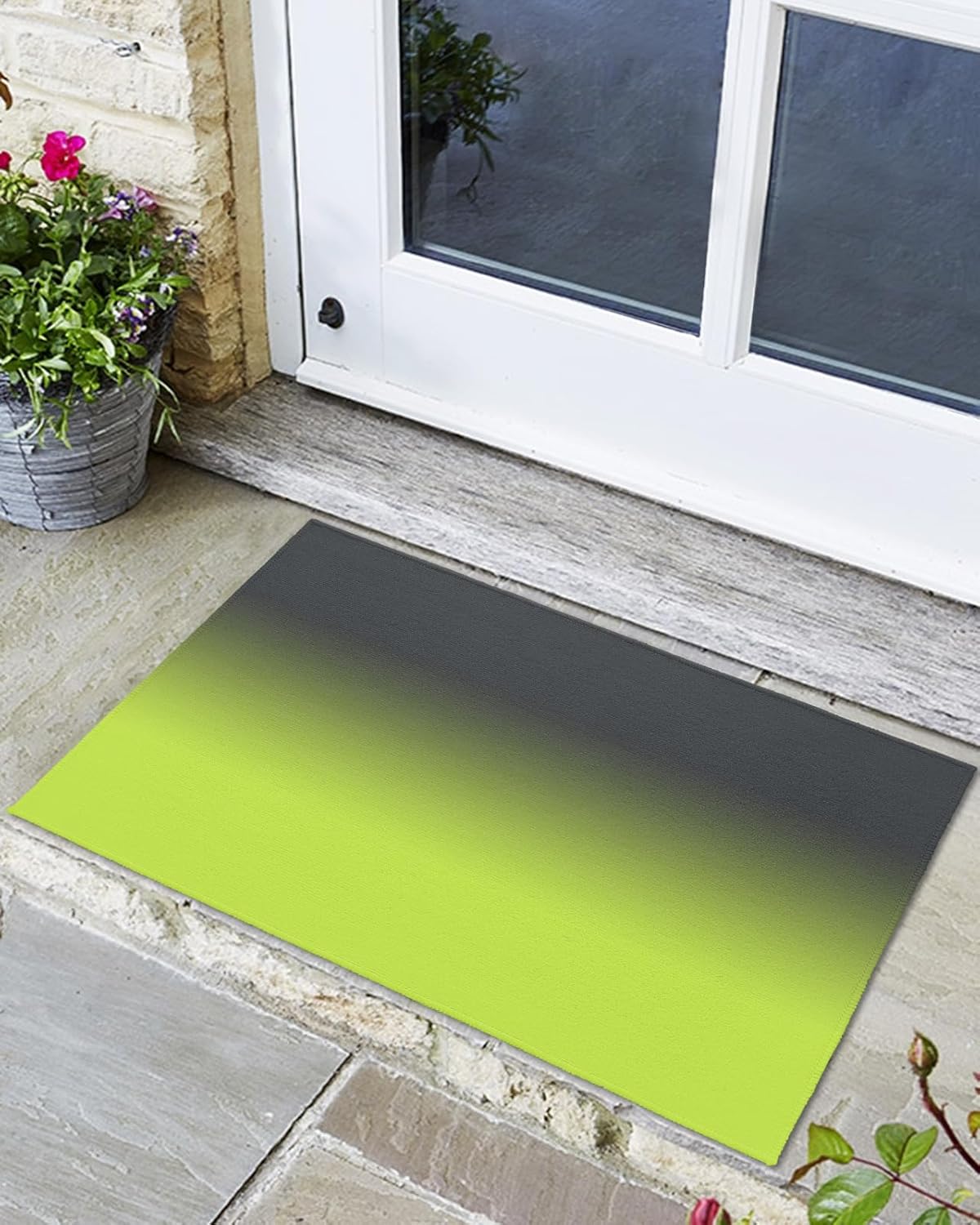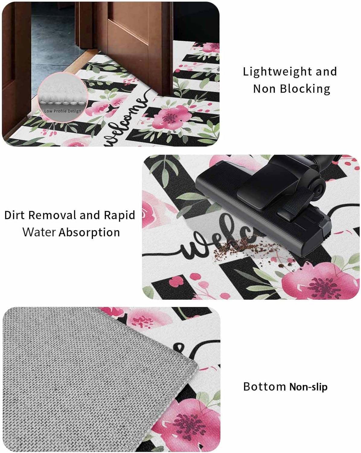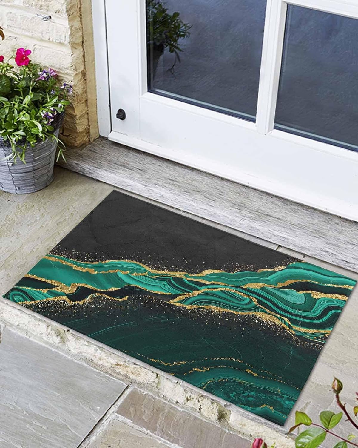 High Quality Front Door Mat: -- Durable and does not fall off -- Thin design -- TPR rubber backing design -- Delicate and elegant pattern -- Strong water absorption Floor Protector: Our outdoor doormats provide non-slip, absorbent floor protection. And make sure the stain doesn't spill over. The entry rug is made of super absorbent polyester that effectively absorbs moisture and dirt, keeping your home cleaner for longer. Home Essentials: Floor mats are perfect for indoor or outdoor use, such as entryways, patios, garages, halls, or kitchens. Thoughtful Design: Low-profile design ensures the front rugs won't get caught under the door when opening and closing! Easy maintenance: 1. Machine washable. Do not bleach. 2. Shake off debris from the mat or use a vacuum cleaner to remove mud and grime. 3. Use a garden hose to rinse the entrance carpet. Note: Since the doormat is folded up during shipping, it is normal for the carpet to have two creases. Please lay it flat for 2 to 3 days and wait patiently for it to recover.