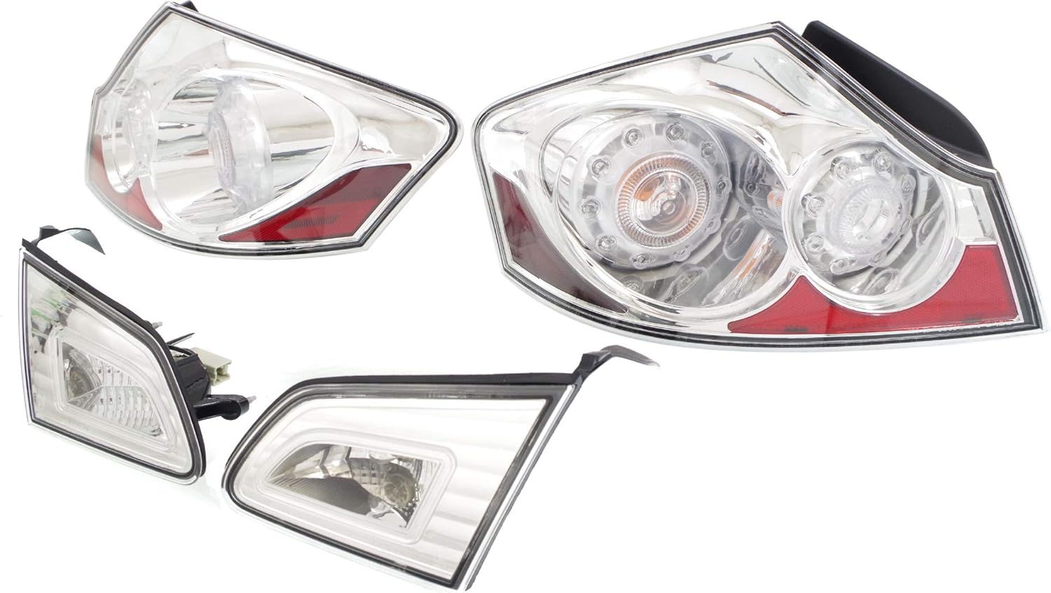 | Additional Features | 26555JK60D-PFM, IN2811102, 2015 2013 2012 2011 2010 2009 2008 2007, G35 G37 G25 Q40, 4-Door, Sedan, Driver Left and Passenger Right Side, Base Sport X Journey X Sport, Tail Light, Clear Lens; Chrome Interior, Halogen, Set of 2, With bulb(s) |