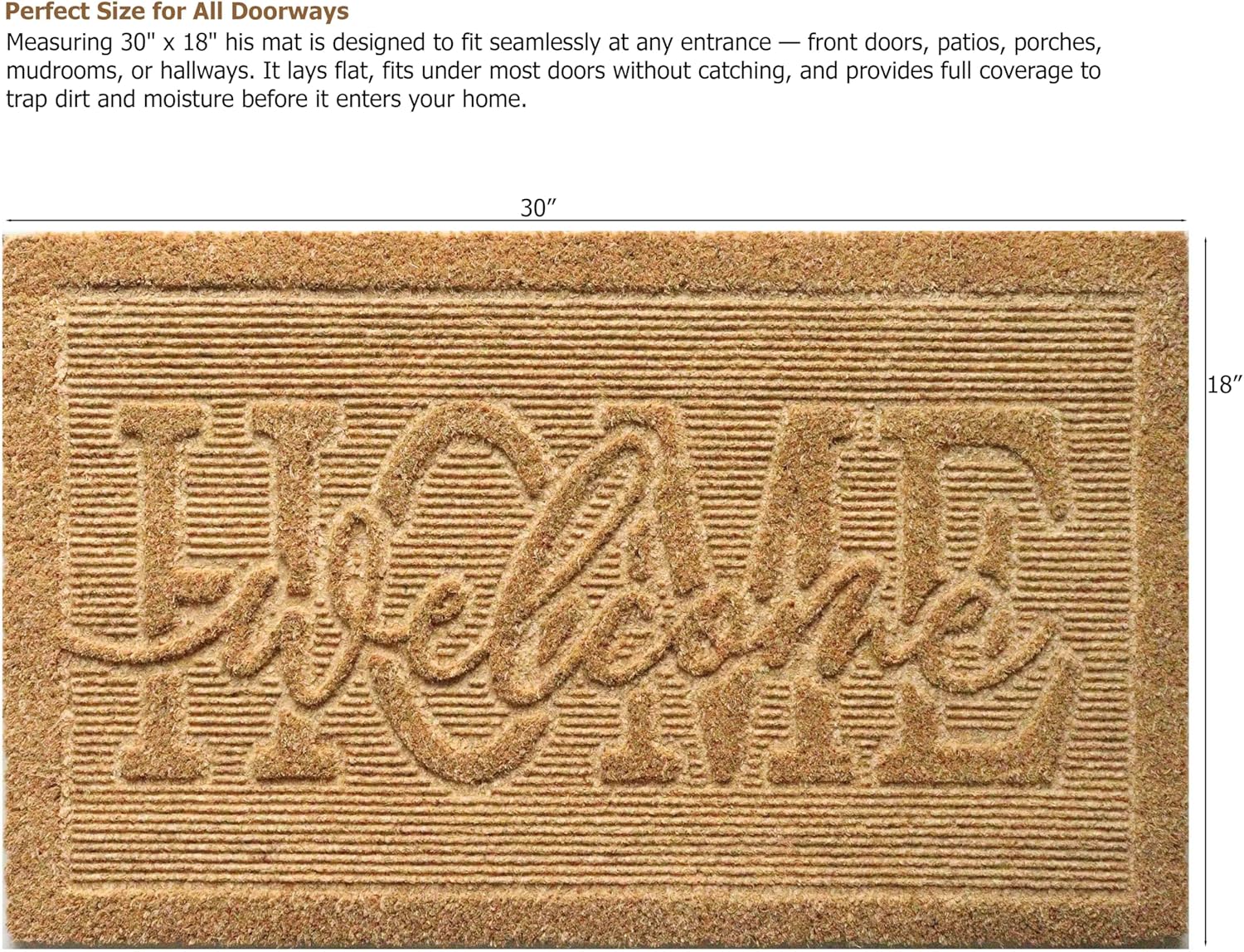 Welcome guests in style with a doormat that blends natural charm with practical function. This embossed mat makes an inviting first impression, featuring a bold “Welcome” greeting that instantly adds personality to any doorway. Its rectangular shape offers ample surface coverage, making it ideal for standard entryways and thresholds. The mat’s structured form and neat edges create a polished look that elevates the appearance of your porch, patio, or front step. Its neutral, earthy tone works well with a variety of exterior materials—brick, wood, stone, or concrete—while the embossed lettering adds a dimensional touch that sets it apart from plain designs. Whether you're aiming to refresh your home's curb appeal or add a warm detail to a covered entry, this mat combines visual appeal with placement flexibility. Beyond aesthetics, the mat offers a reliable foundation that stays in place and complements your home’s overall look. It pairs effortlessly with seasonal decorations, potted plants, lanterns, or outdoor furniture, making it a versatile accent that can be styled year-round. Whether you're setting the tone for everyday living or special occasions, this embossed welcome mat helps create a clean, cohesive, and inviting entrance.
