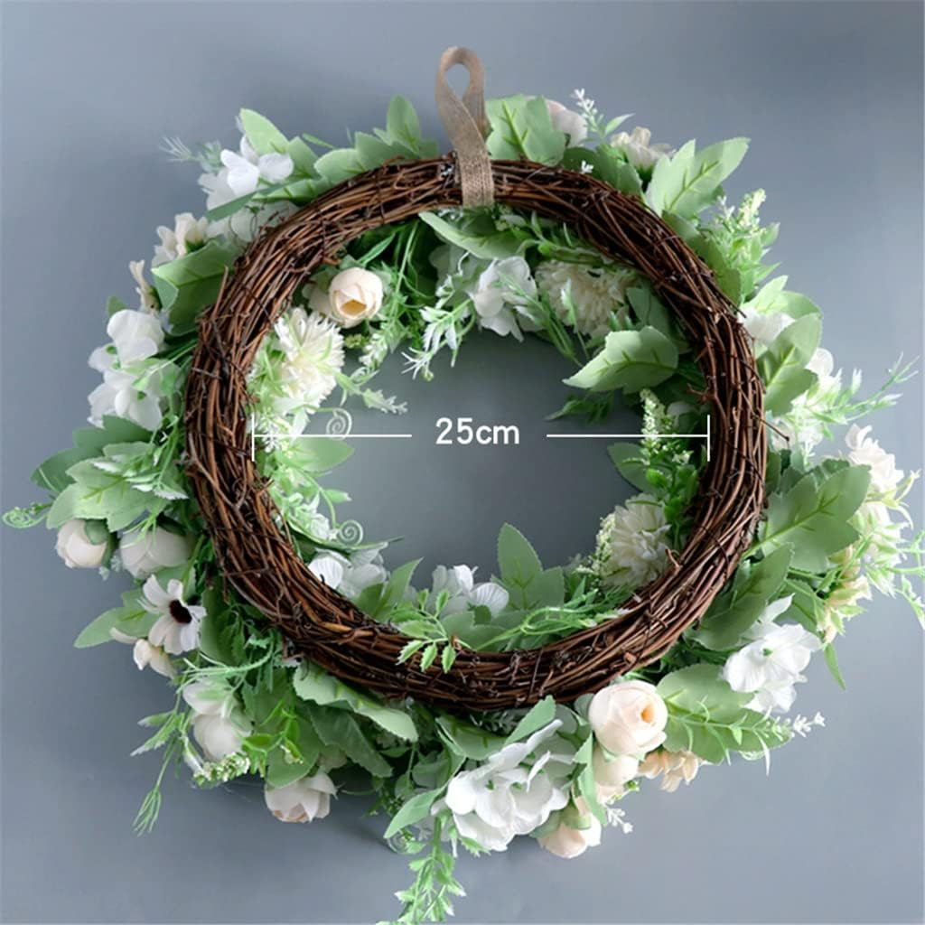 A beautiful handmade decorative wreath of white champagne coloured peony hydrangeas.Beautiful green leaves between the flowers for a brighter natural look.Made from material for long lasting use.Leaves and flowers a sturdy and tree and vine wreath. for front doors, windows, fireplaces, walls, offices and retail shop decor.Material: silk flowers.Craftsmanship: handmade.Size: 45*45cm.Package Contents: 1*garland (other display items not included).Note:Please understand that colors may exist chromatic aberration as the different placement of pictures.Please allow 1-3mm error due to manual measurement and make sure you do not mind before ordering. thanks!Wide Application: Suitable for indoor and outdoor decoration. such as: home, kitchen, office, wall, Porch , window