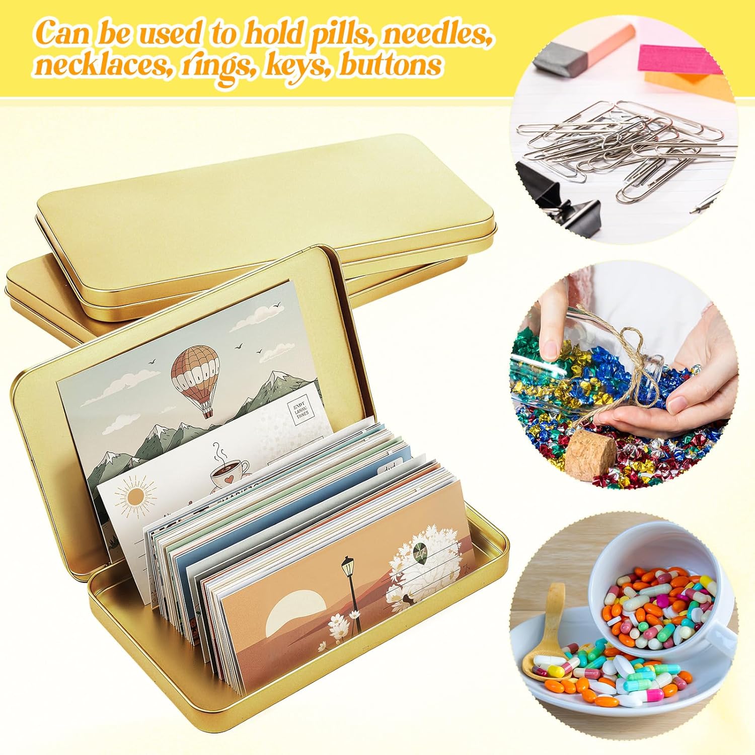 Features: Safe to use: The smooth edges and quality materials of these metal rectangular empty boxes will not hurt your hands, and you don't have to worry that others can see what is in your box, because there is no metal cover with window design, you can safely protect your personal privacy. Ideal presents: It is a suitable present for you to give these silver rectangular hinged lid tins to your family members, friends or others who like travelling, they can pack some items with these metal storage boxes, such as cotton pad, compressed towel, earrings, rings and more, which are practical tools for the travelers. Specifications: Material: tinplate Color: gold Size: approx. 7.0 x 4.2 x 0.6 inches/ 17.8 x 10.8 x 1.5 cm Package includes: 10 x Metal rectangular empty boxes with lids Warm notes: A little size errors may exist due to different measuring methods, please check the size before purchase. Please store them in a dry environment for next using