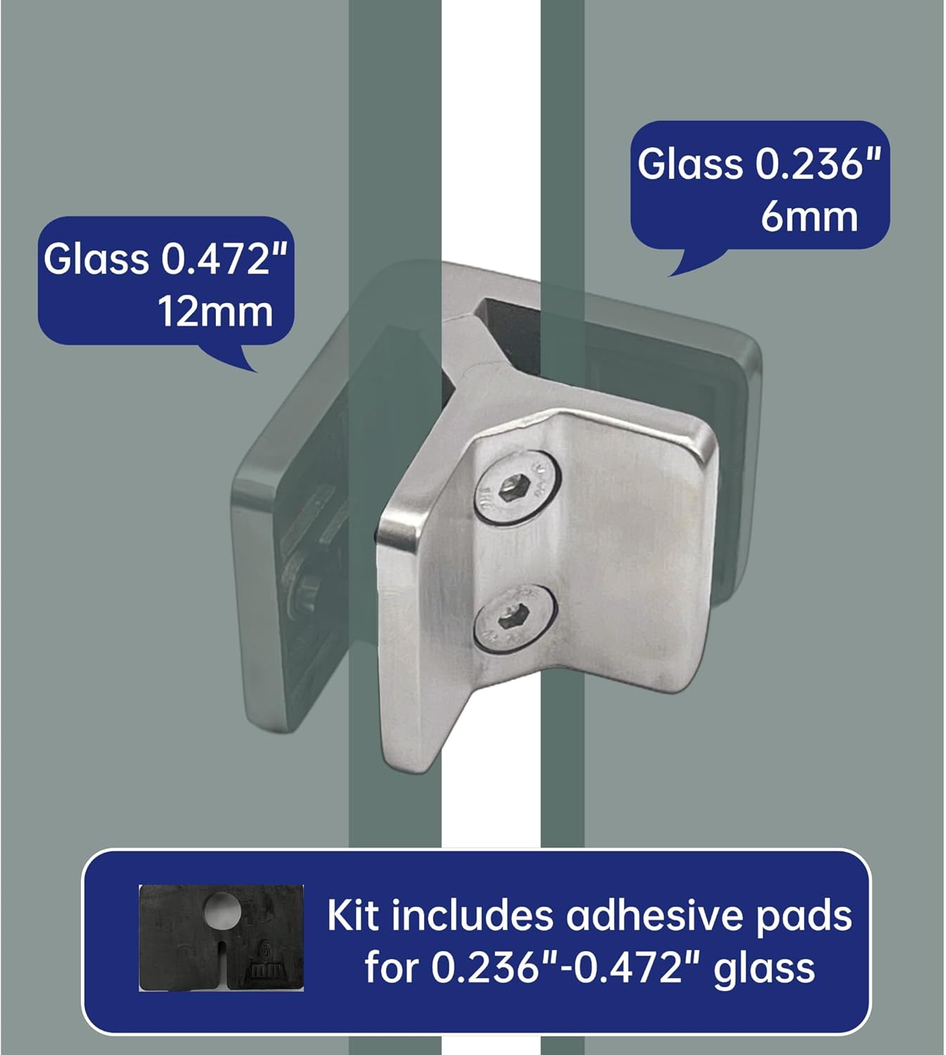 1.【GLASS CLAMP SPECIFICATIONS 】 2 PCS 1.75"x2.1"x1" Stainless Steel 304 Flat Back Square Glass Clamps, Fits 1/4"-1/2" tempered glass, A very elegant looking Satin Silvery surface, It can be perfectly used for balustrade, staircase, handrails, bathrooms, balcony, etc.