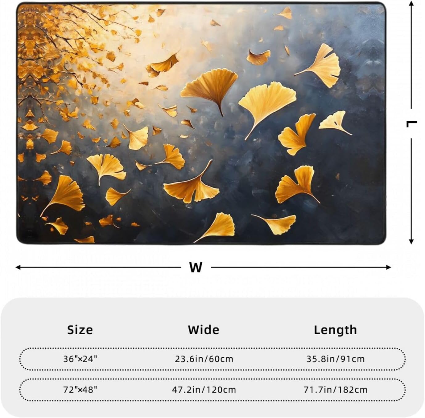 Transform your home with the exquisite WZYWHJ Golden Ginkgo Leaf Dance Picture flannel carpet floor mat 72"x48" . Crafted from high-quality flannel fabric (polyester), this carpet boasts a high density space elastic cotton interlayer that is not only absorbent but also incredibly soft to the touch. The delicate fluff texture adds a touch of luxury while ensuring no pilling or fading over time. The innovative middle layer features a high-density memory sponge that effectively relieves foot pressure, making it a comfortable choice for any room. Suitable for a wide range of scenarios including living rooms, offices, coffee tables, beds, and balconies, this carpet floor mat offers versatility and style. The bottom of the mat is made of non-woven fabric and plastic, providing an anti-slip and durable foundation. Easy to clean, wear-resistant, and lint-free, this WZYWHJ carpet is the perfect blend of comfort, functionality, and durability.