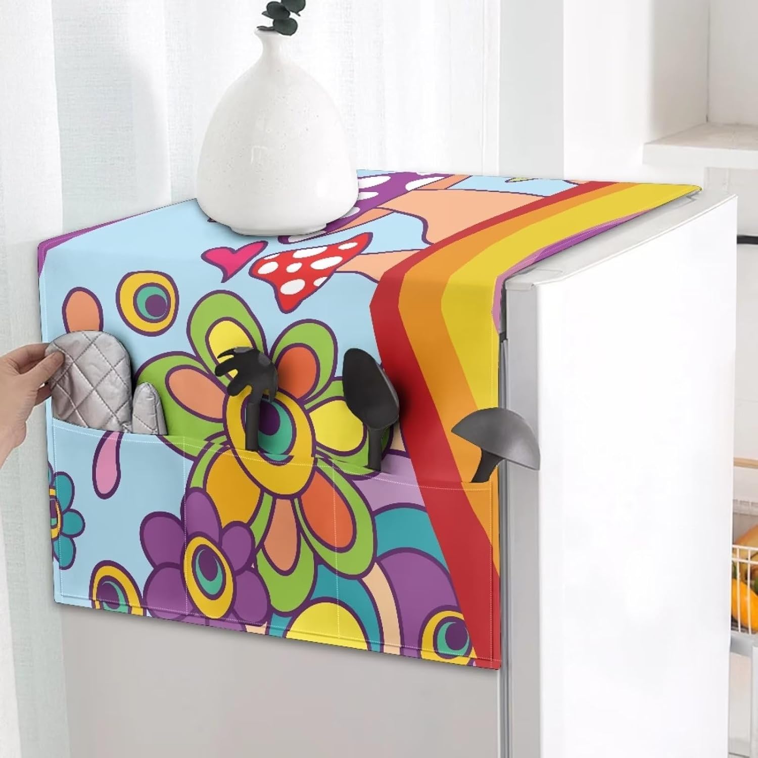 Gomylomy Refrigerator Dust Cover, Washing Machine Water and Oil Resistant Top Cover with Pocket, Oven Multi-Purpose Cover Size:S-34x13.3 inches (86.5x34cm); M-51.5x22 inches (131x58cm); L-67.3x28.5 inches (171x72.5cm) Features -Made of high quality 8-anchor canvas material, durable and soft. -When you feel a stain, feel free to put it in the washing machine without distortion. (Do not bleach) -There are many fashion patterns to choose from, of course, if you need to customise it, you can contact us and we will try our best to meet your requirements. -It can be a must-have for your home decor, a perfect and practical gift for family, friends. Purchasing Notice Due to the different measurement methods, the error within 1-2cm is normal. The picture effect is for reference only, the final effect is subject to the real thing. Due to the influence of objective factors, the existence of small colour differences and other problems are normal. If you have any questions about this product, please feel free to contact us, we are happy to give you an answer!