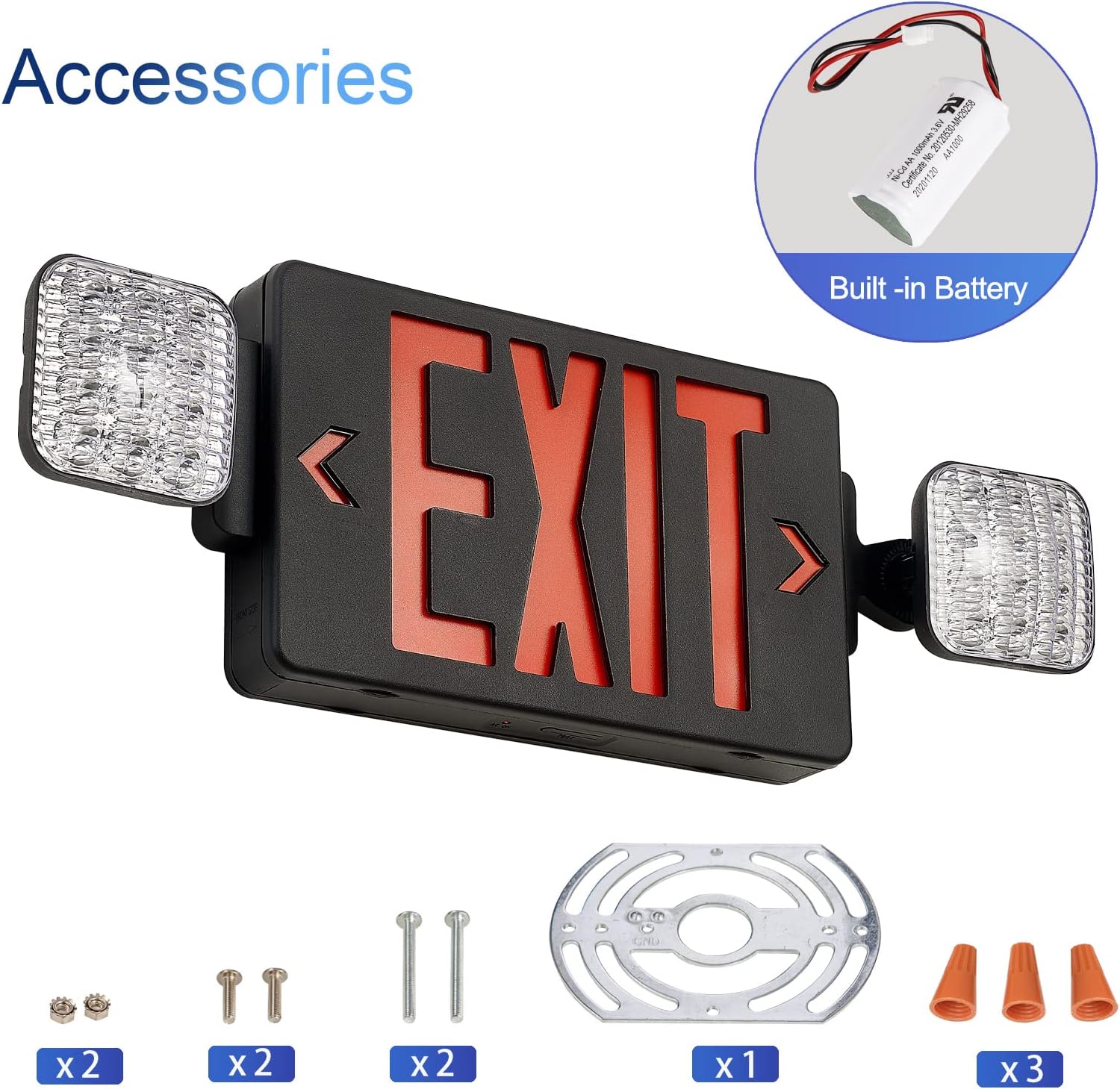 GZRUIYANG Black Housing Exit Sign with Emergency Lights Red, LED Emergency Exit Light with Battery Backup, UL 924 Certified, AC 120/277V, Commercial Emergency Lights Combo for Business - 2 Pack