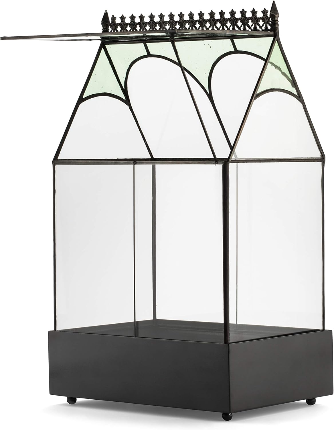 | Included Components | Glass terrarium top, metal tray |