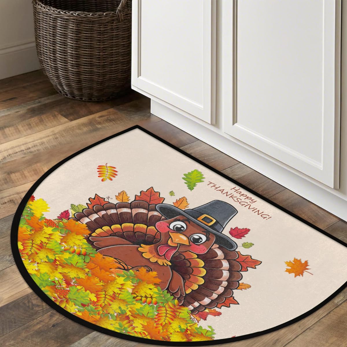 Product Description SPECIFICATIONS Size: 36x24 in Material: Front side - 100% microfiber polyester, backside - non-skid dot plastic Shape: Half Round Rug/Half Circle Rug/Half Moon Rug/Half Area Rug/Half Round Mats Package: 1 x Half Round Area Rug PRODUCT FEATURES: 1:The door mat is made to take dirt, dust, moisture from shoes and hold onto it so that the mess doesn't make its way into your house, keep home or office floors to stay clean and dry! 2:This entrance doormat come with low profile design, which is thin enough for your front door, will not trap the door. -->Half Moon Doormat Floor Mats Rug Non slip, protect the kids and pets from slipping when they playing or running. 3:Door mats easy to care. Hand washed or rinse it off. 4:Multi-Purpose Usage, Our round carpet is an ideal choice for home decoration, suitable for bedroom, living room, study room, play room, kid's room, baby room, office, women yoga, dormitory, pet house, etc. Great for entrances, doorways, kitchens, conservatories, laundry room, mudroom, front or back door, pet doors, garage and even caravans. 5:Compact size, perfect for small doorways. 6:Perfect Gift, entrance mat easy to match home decor, It is also Warm gifts for family and friends on Christmas, Easter, Halloween, Hanukkah, New Year, St. Patrick’s Day, Thanksgiving Day, Valentine’s Day and other holidays.